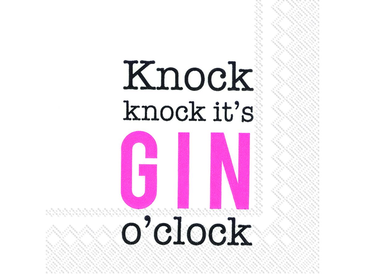 Ihr Cocktailservetten 25x25 cm 20 stuks Knock Knock It's Gin O'Clock - Pink