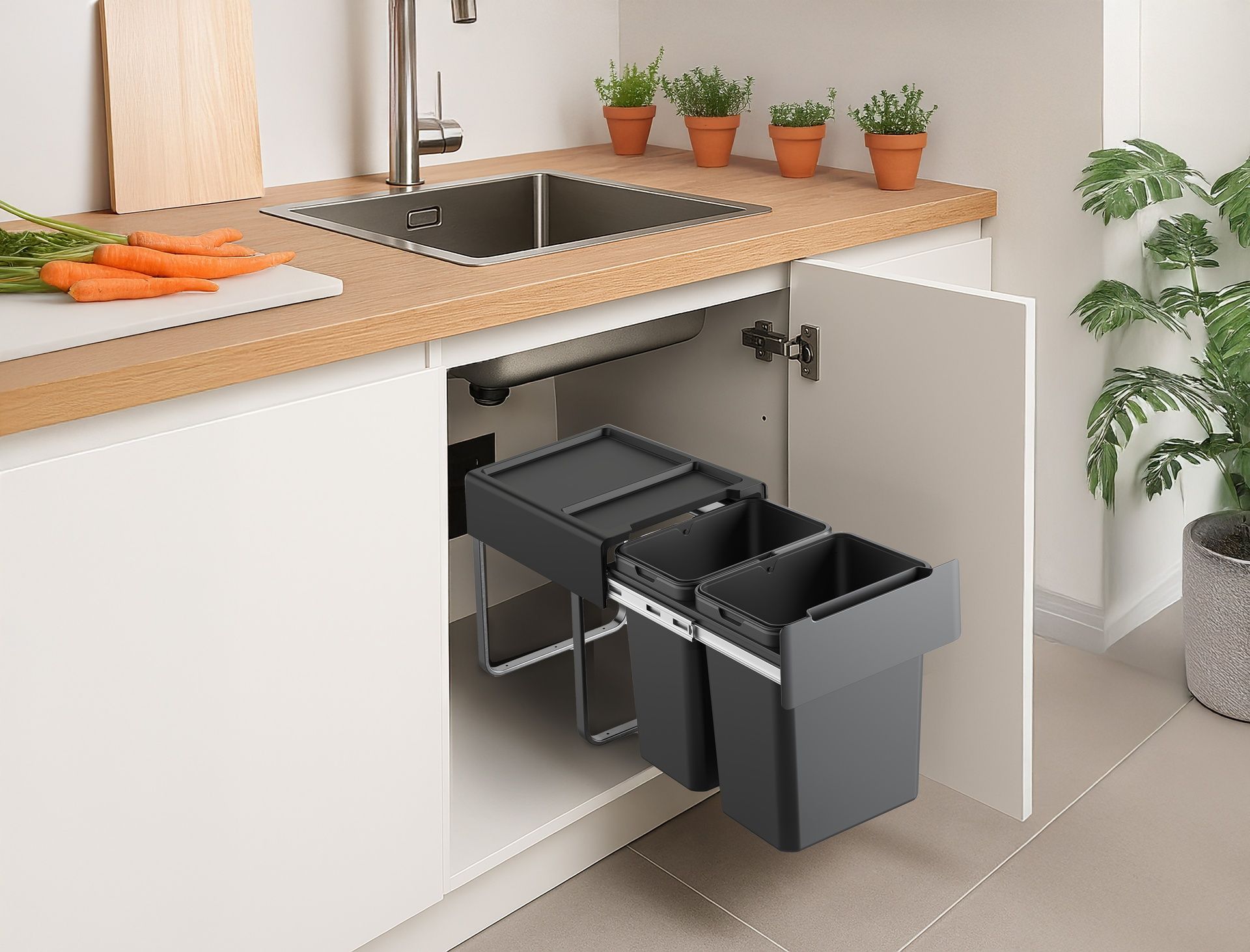 Inbouw Afval Emmer Zwart Practo 2 x 20L