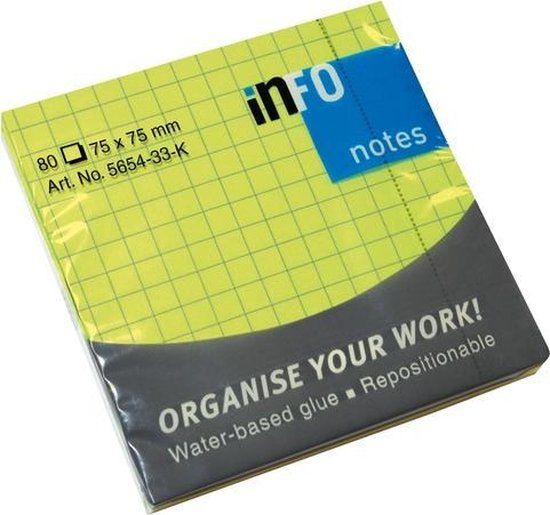 Info Notes Sticky Notes 75x75 mm - Fel Groen - 80 vellen - Ruitjes