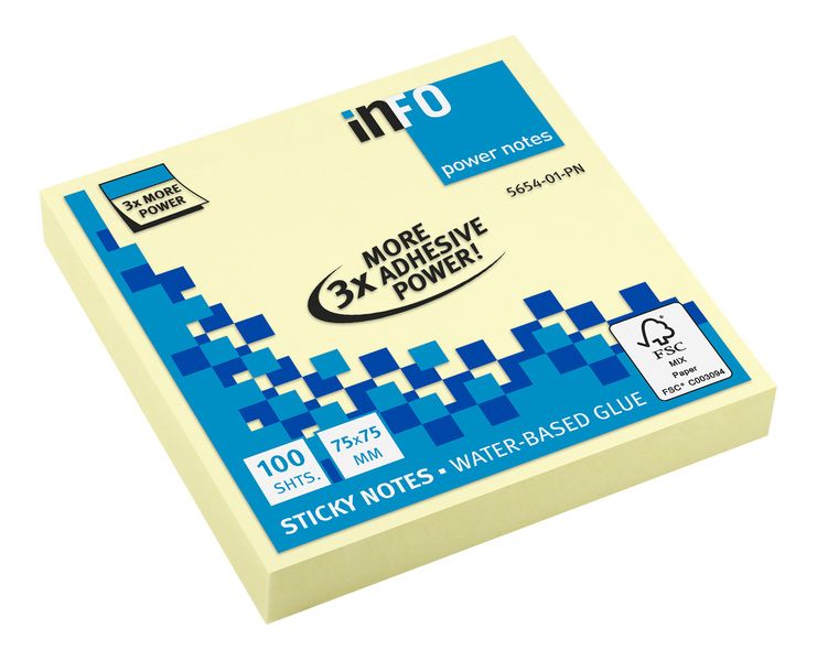 Info Sticky Power Notes Geel 75x75 mm 100 vel