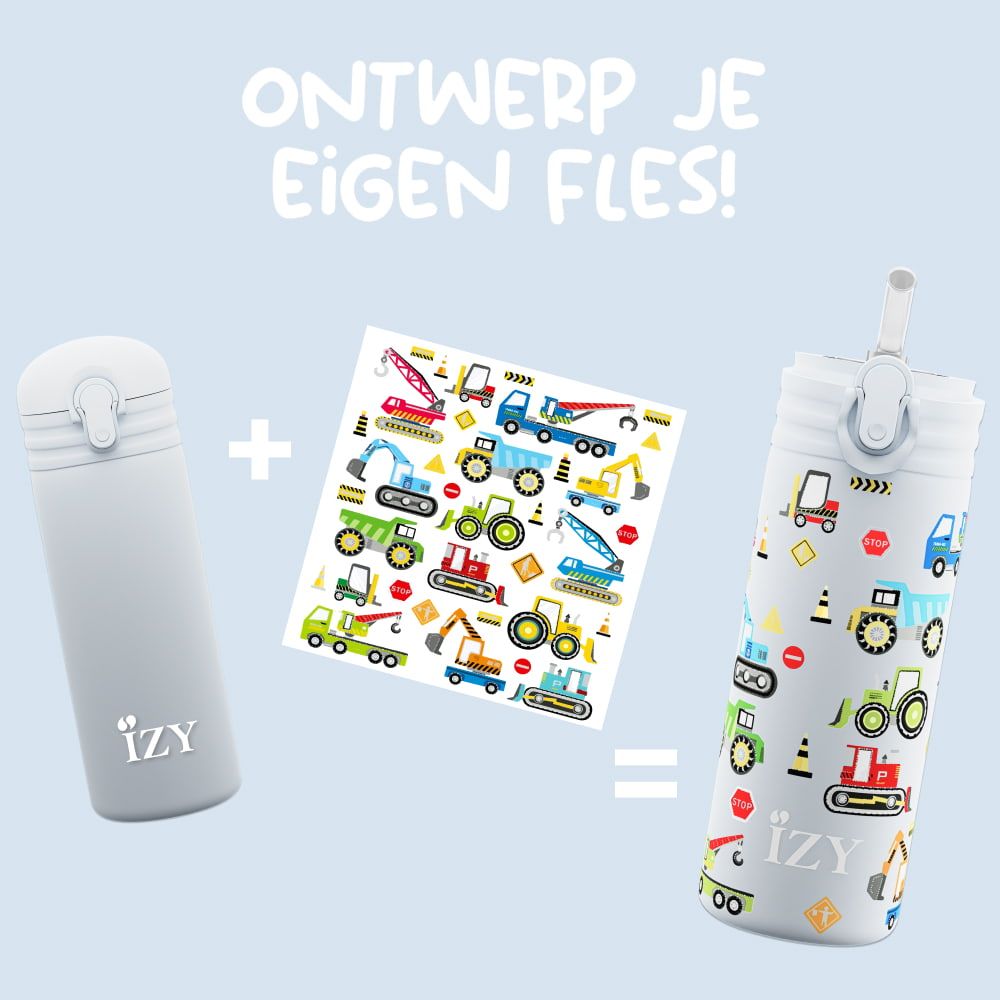 IZY Kids Isoleerfles Blue Machines 350ml met Stickervel