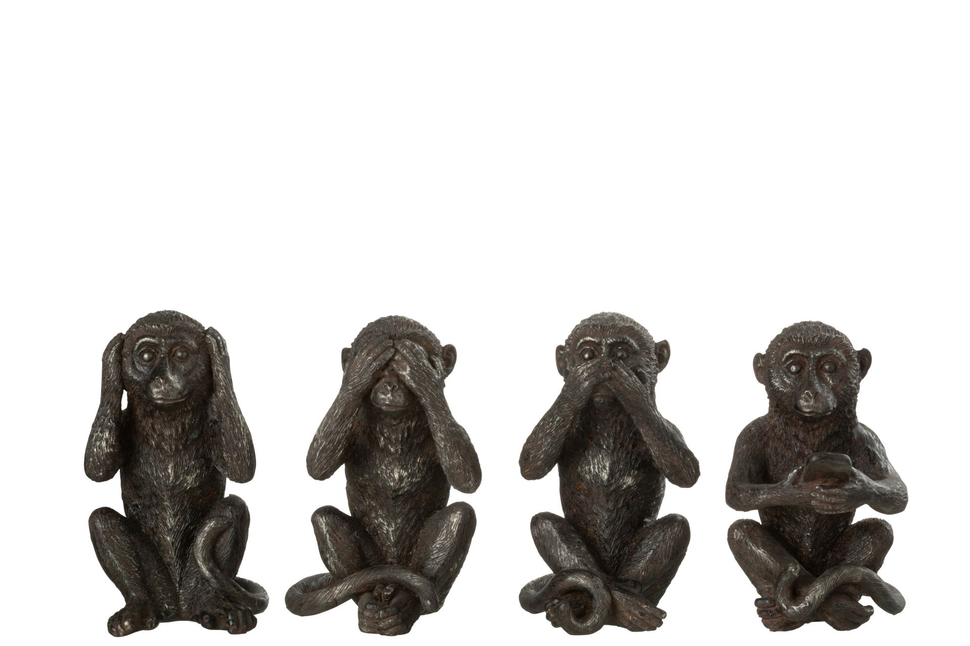 J-Line Aap Horen/Zien/Zwijgen/GSM Bruin 9x7x12 cm - assorti - prijs per stuk