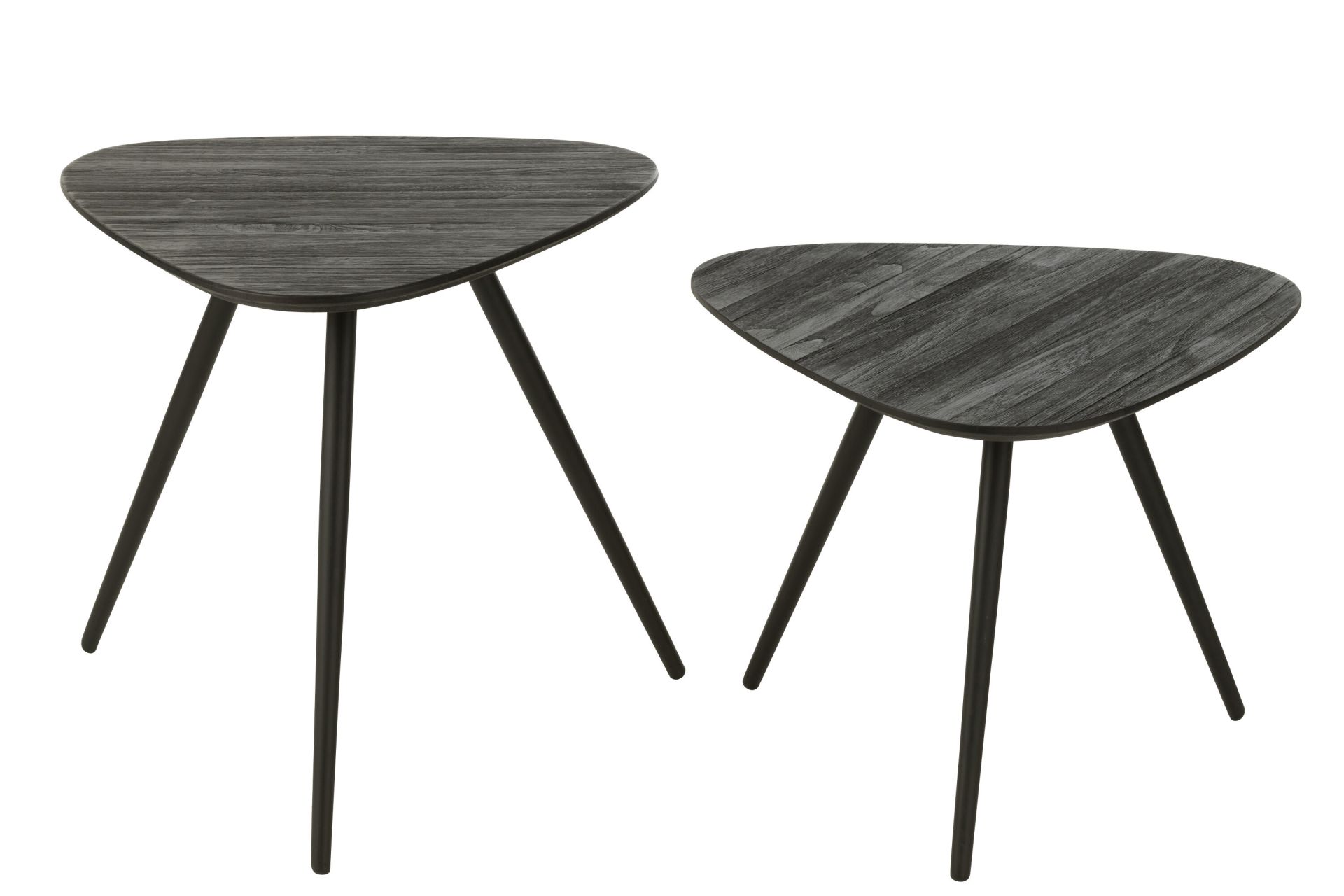 J-Line Bijzettafel Driehoek Set 2-delig Teak 50x50x50 cm Zwart