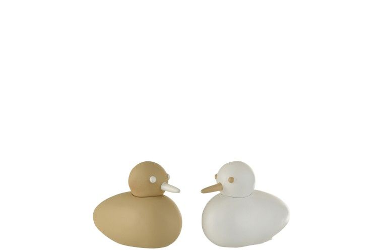 J-Line Eend Wit/Beige 12x7x6cm assorti - prijs per stuk