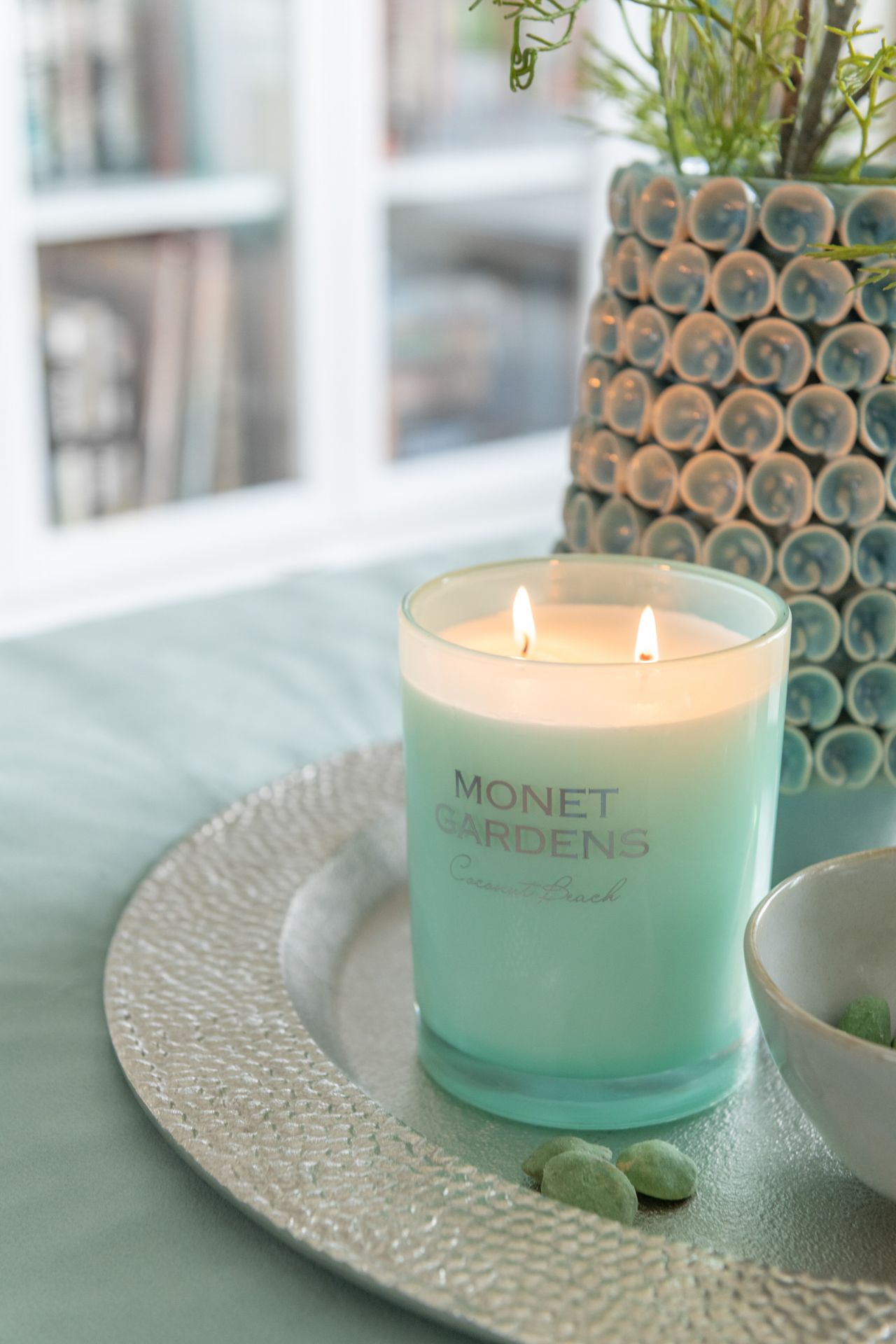 J-Line Geurkaars Monet Gardens Aqua 10.5x10.5x13.3 cm - Large 70 Branduren