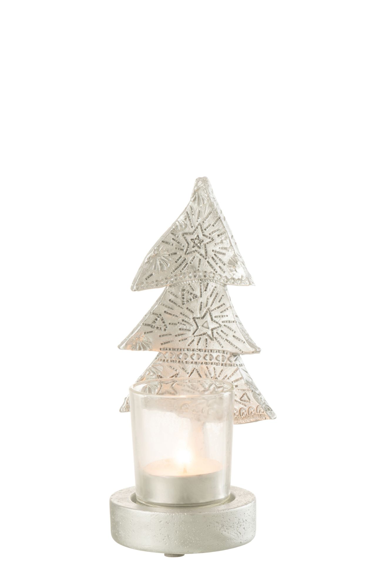 J-Line Kaarshouder Kerstboom Zilver 8.5x8.5x17.5 cm