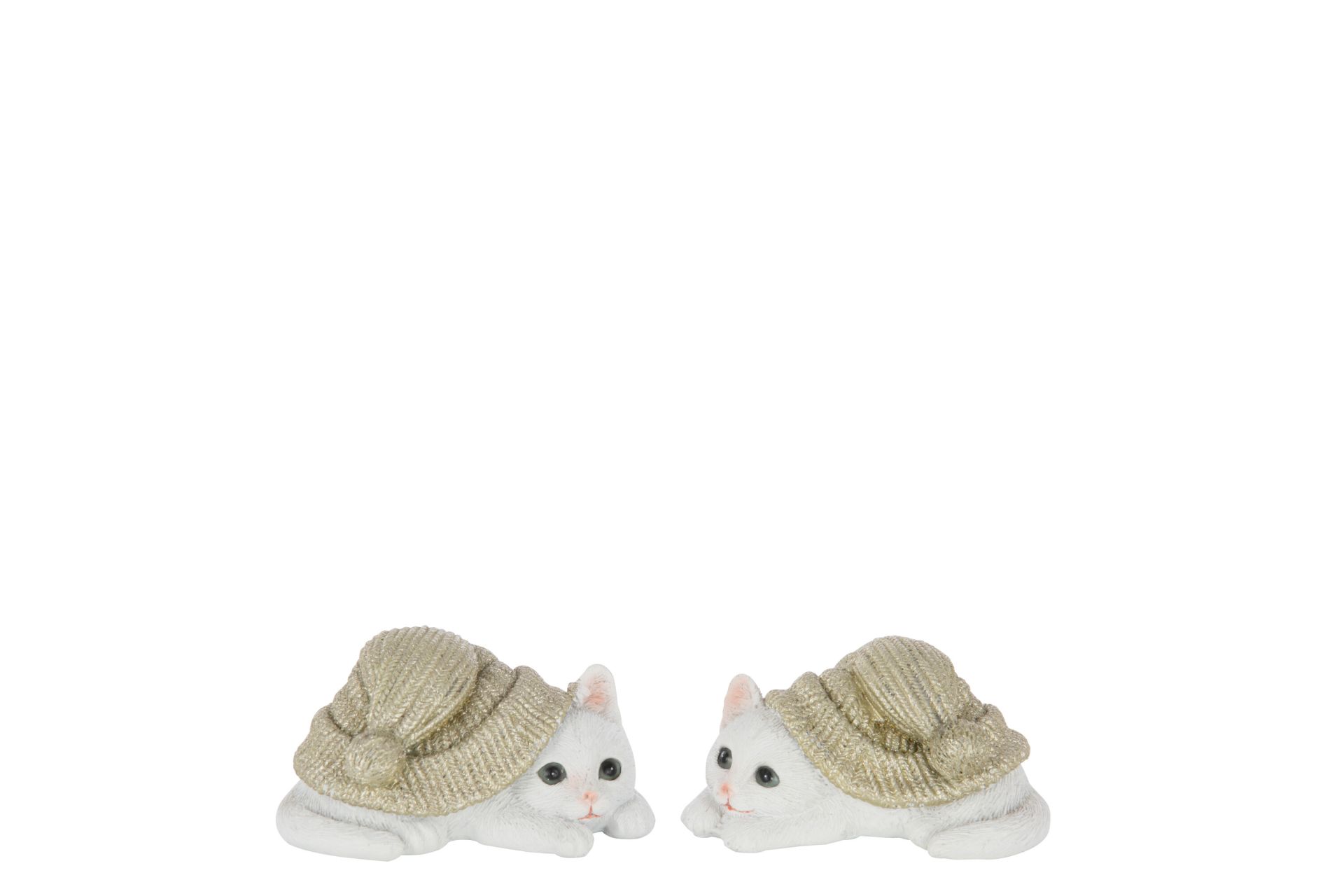 J-Line Kat met Muts 10.5x6.5x5.5 cm - Wit/Grijsgroen - assorti - prijs per stuk
