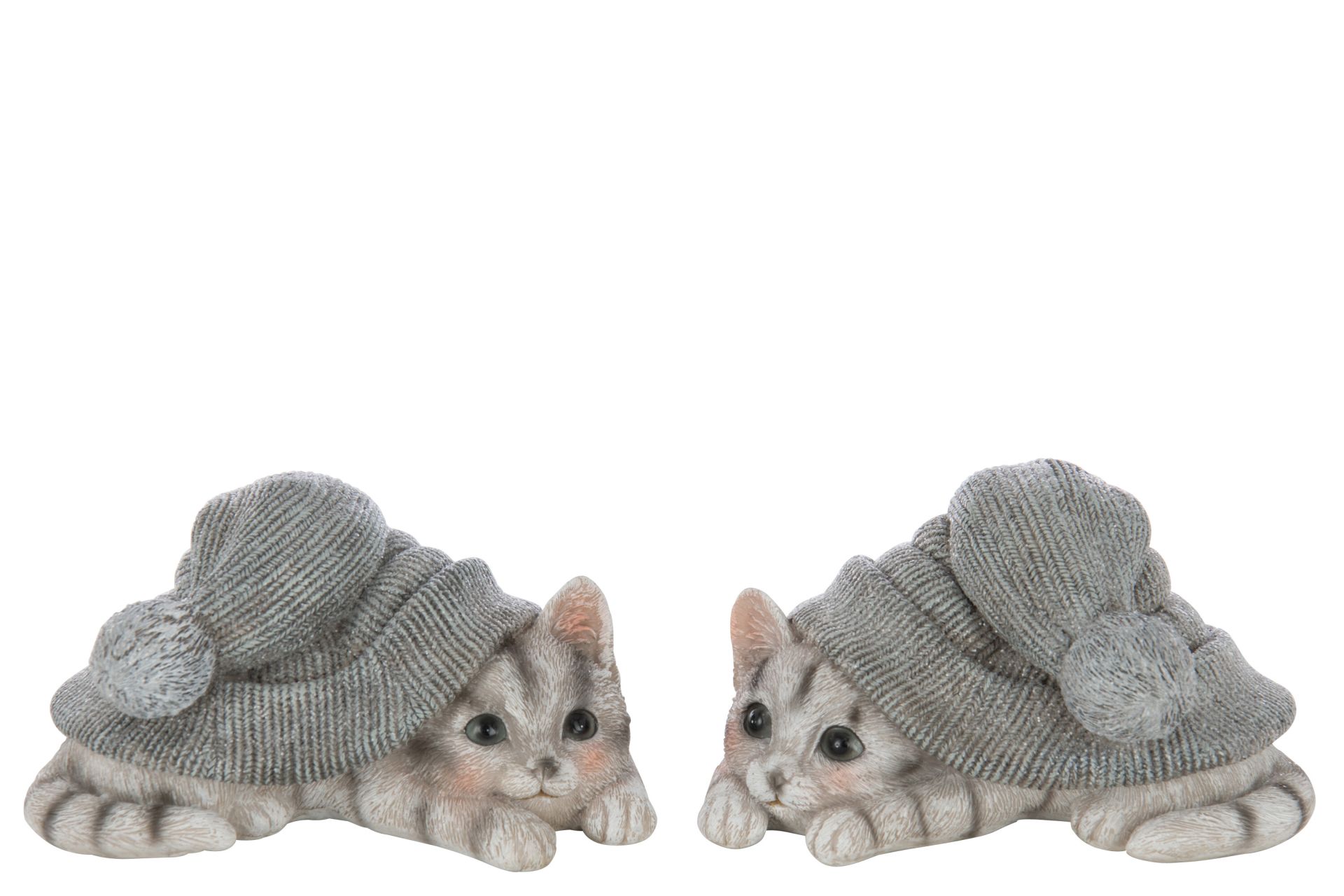 J-Line Kat met Muts 18x12.5x9.5 cm - Grijsblauw - assorti - prijs per stuk
