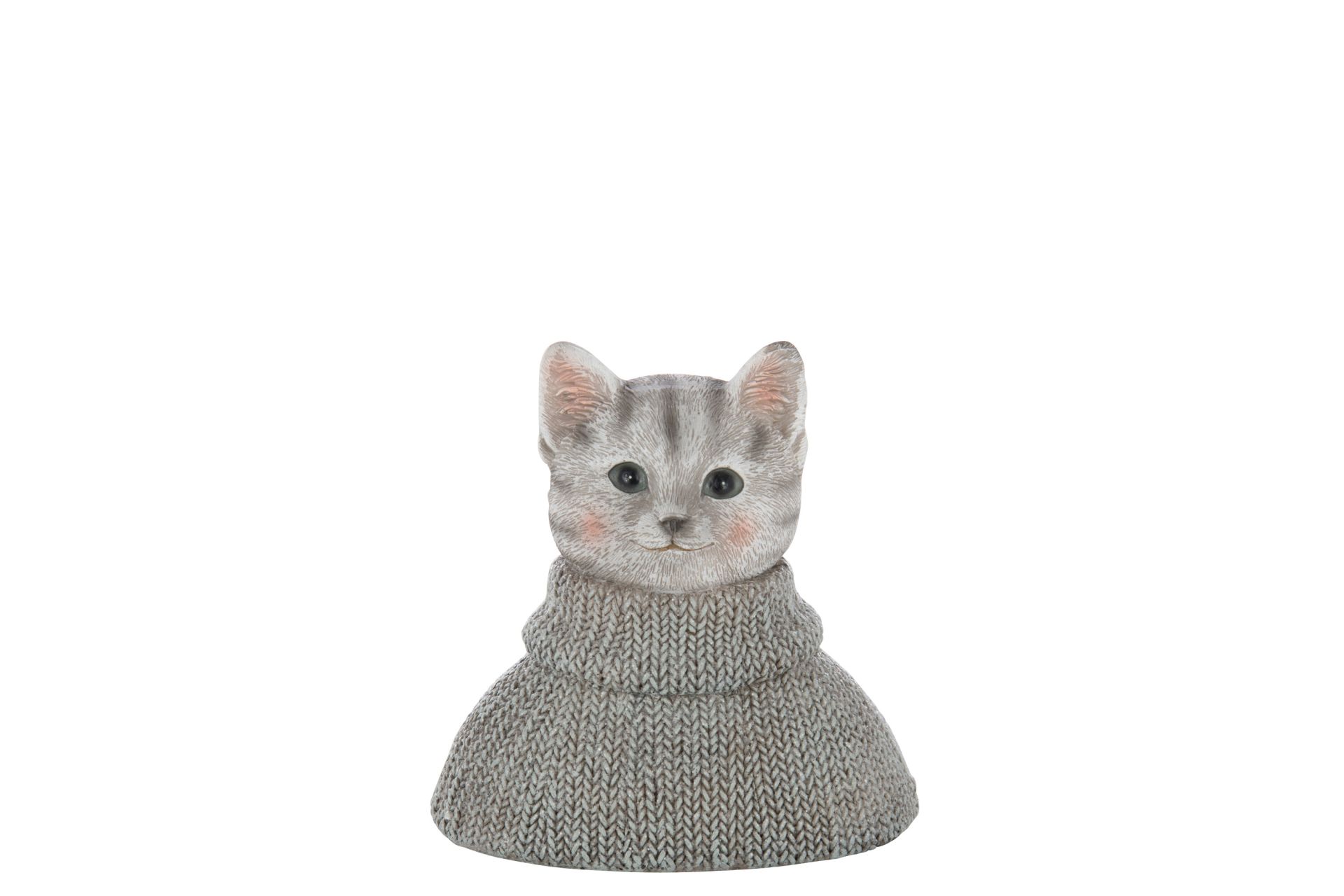 J-Line Kat met Sweater 14x8.5x14.5 cm - Grijsblauw