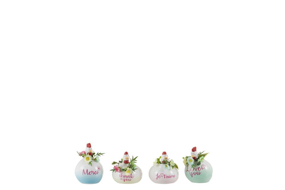 J-Line Kip Bloem Keramiek Wit Pastel 7x7x11cm - Assorti