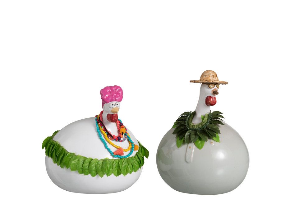 J-Line Kip Cuba Keramiek Groen/Roze 16x16x21cm - assorti - prijs per stuk