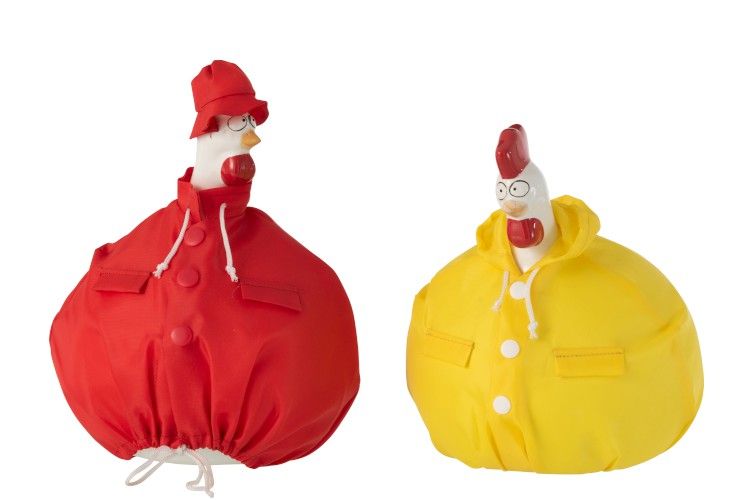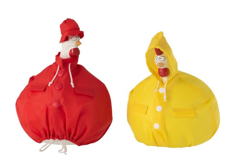 J-Line Kip met Regenjas Keramiek 11x16x15.5 cm - Rood/Geel assorti - prijs per stuk