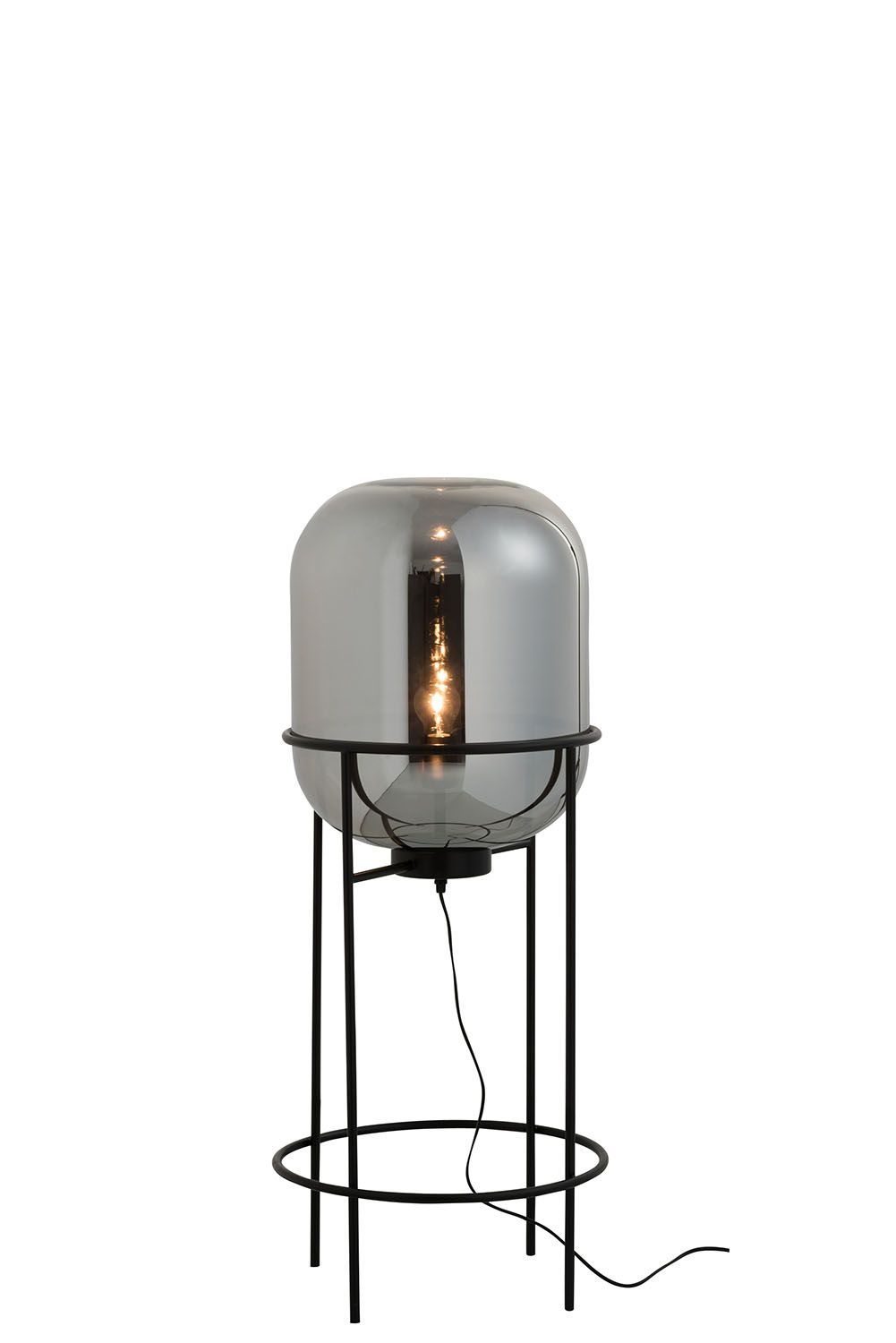 J-Line Lamp Sasha op Voet Metaal/Glas 38x38x98cm - Zilver/Zwart