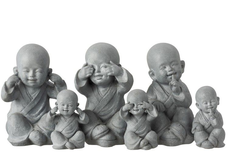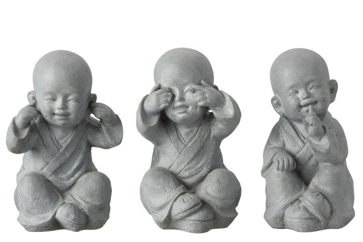 J-Line Monnik Horen/Zien/Zwijgen 15x18x27 cm - Grijs - assorti