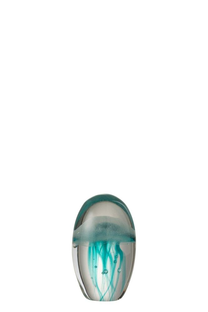 J-Line Presse Papier Kwal Glas 6.5x6.5x10.5 cm - Blauwgroen