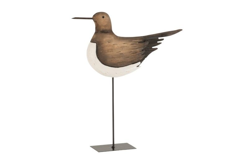 J-Line Scholekster Paulowniahout 35.5x8x43 cm - Donkerbruin/Wit