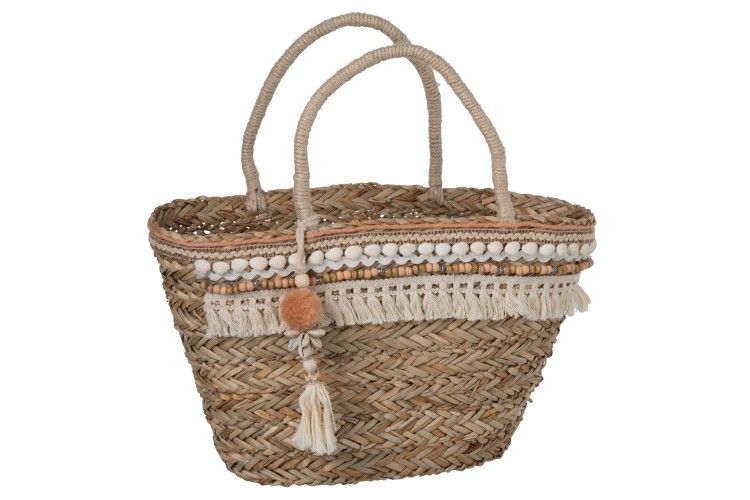 J-line Strandtas Boho Beige/Zalm 46x20x48 cm