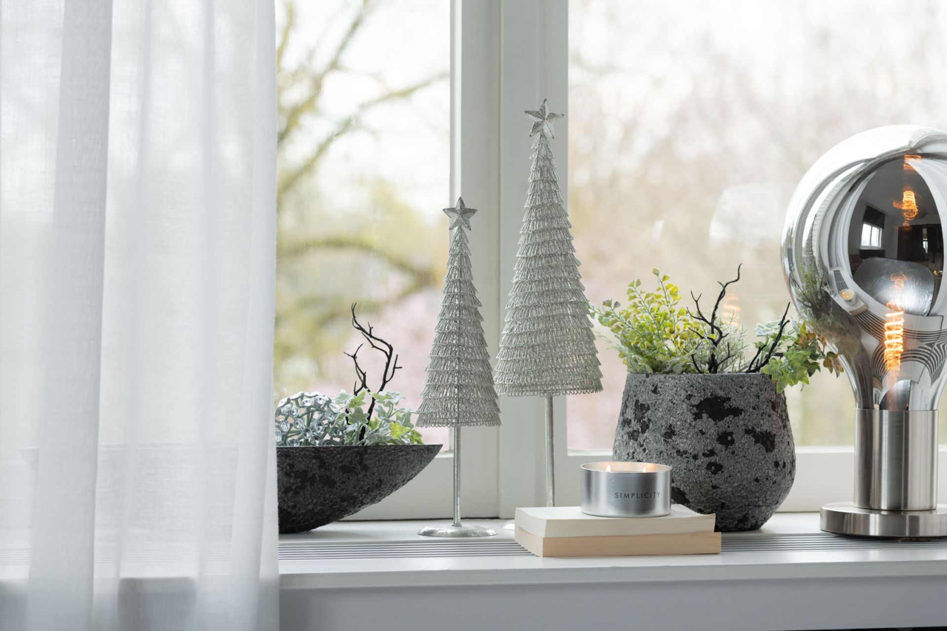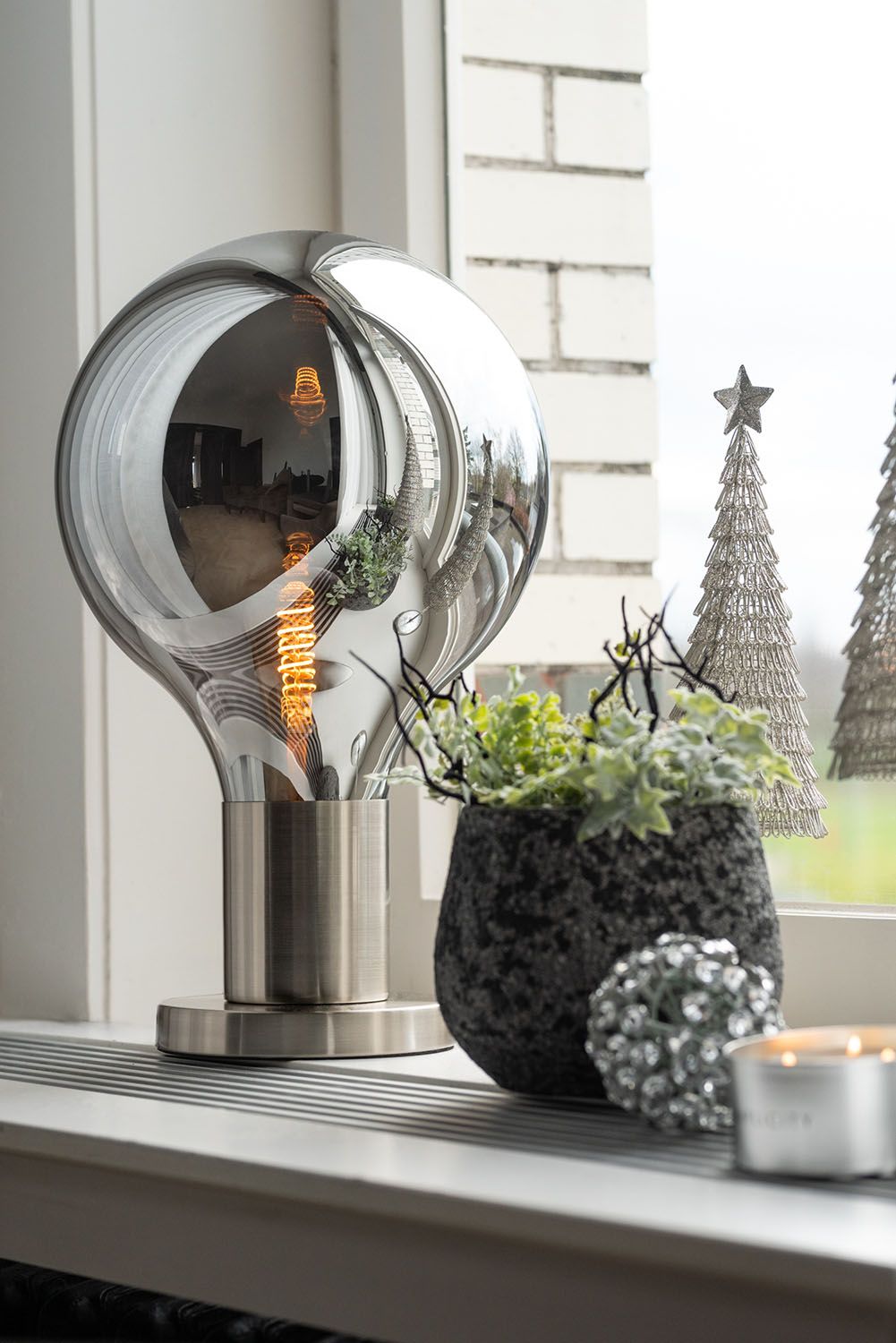 J-Line Tafellamp Bal Glas/IJzer 30x30x50cm - Grijs/Zilver