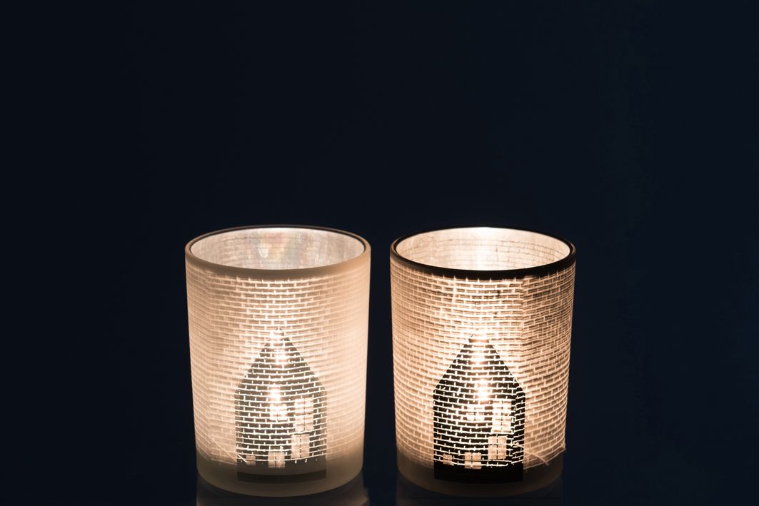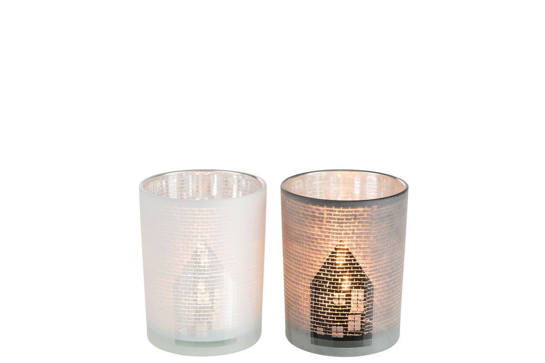 J-Line Windlicht Huis Glas 10x10x13cm - Zwart/Wit assorti - prijs per stuk