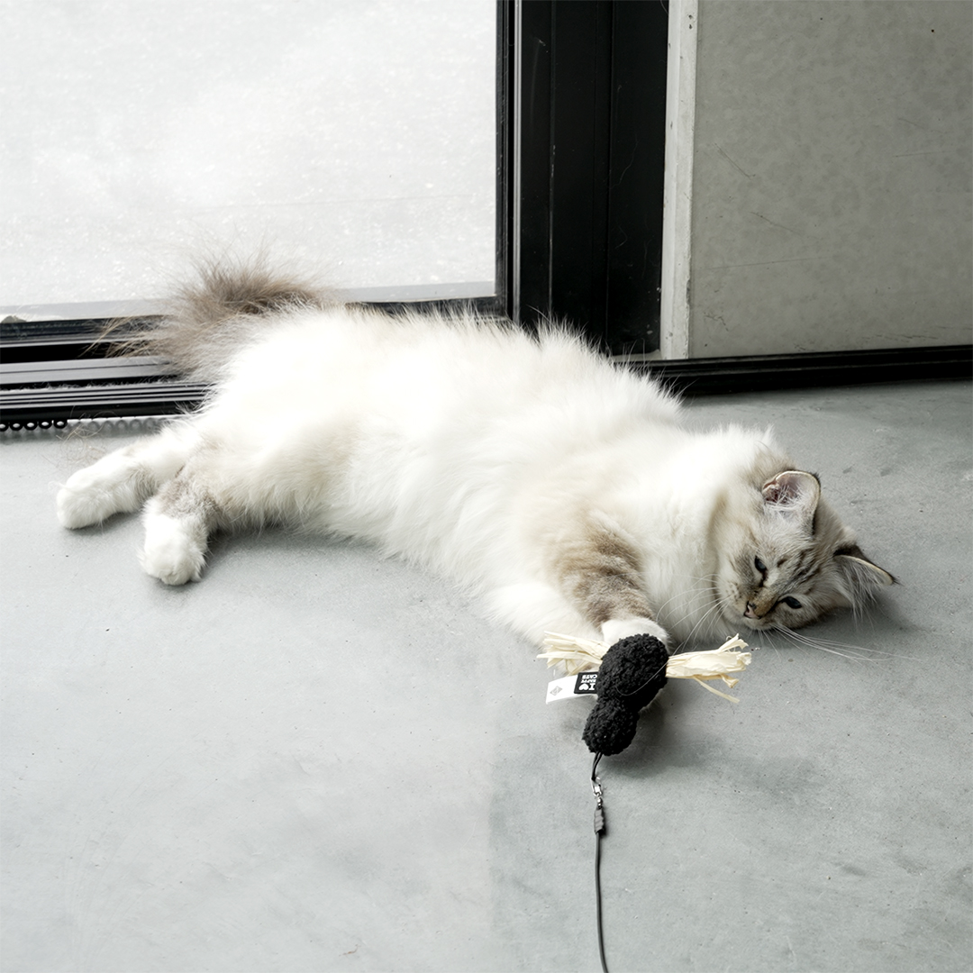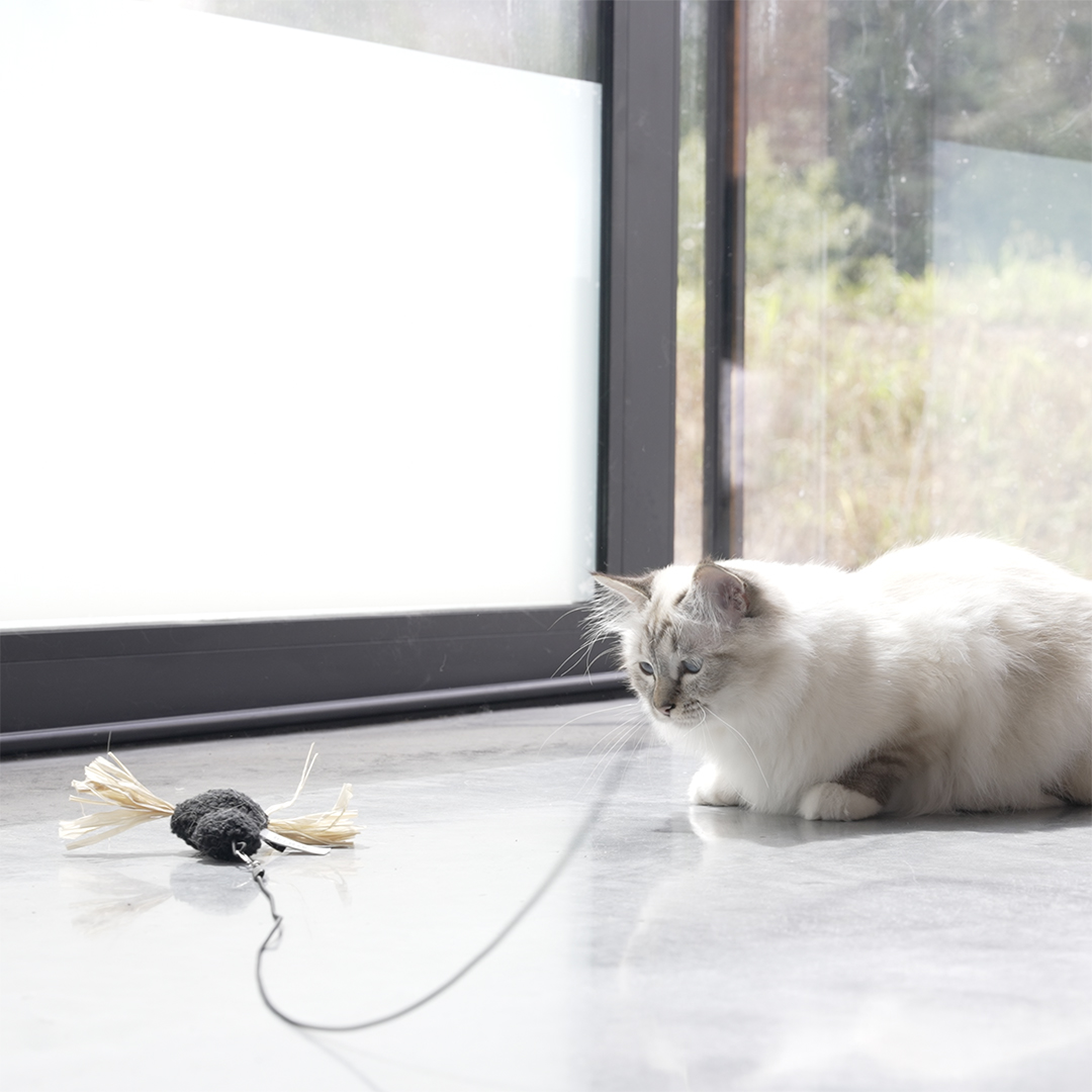 JAVE van D&D Home | I LOVE Happy Cats is ontworpen in samenwerking met kattengedragstherapeut Anneleen Bru. JAVE is een klein kattenspeeltje in de vorm van een spin. JAVE is gemaakt van ecrukleurige teddystof met speelse waterhyacint-accenten. Het is een schattig prooitje dat makkelijk kan worden vastgemaakt aan de CONNOR-hengel om er een jachtspelletje mee te spelen. Na afloop van de jacht haal je het speeltje van de hengel om de trapreactie van je kat uit te lokken die de spanning verlicht. Het zal je urenlang speelplezier geven en houdt je kat fit en gezond. Happy Tip! Als je bij het spelen met je kat de speeltjes heen en weer beweegt, doe dat niet te snel, maar ook niet te traag. Zorg ervoor dat je kat het moeilijk kan aanraken of grijpen! Na afloop van het spel kan je JAVE van de CONNOR-hengel halen en aan je kat geven om haar prooi 'af te maken'.