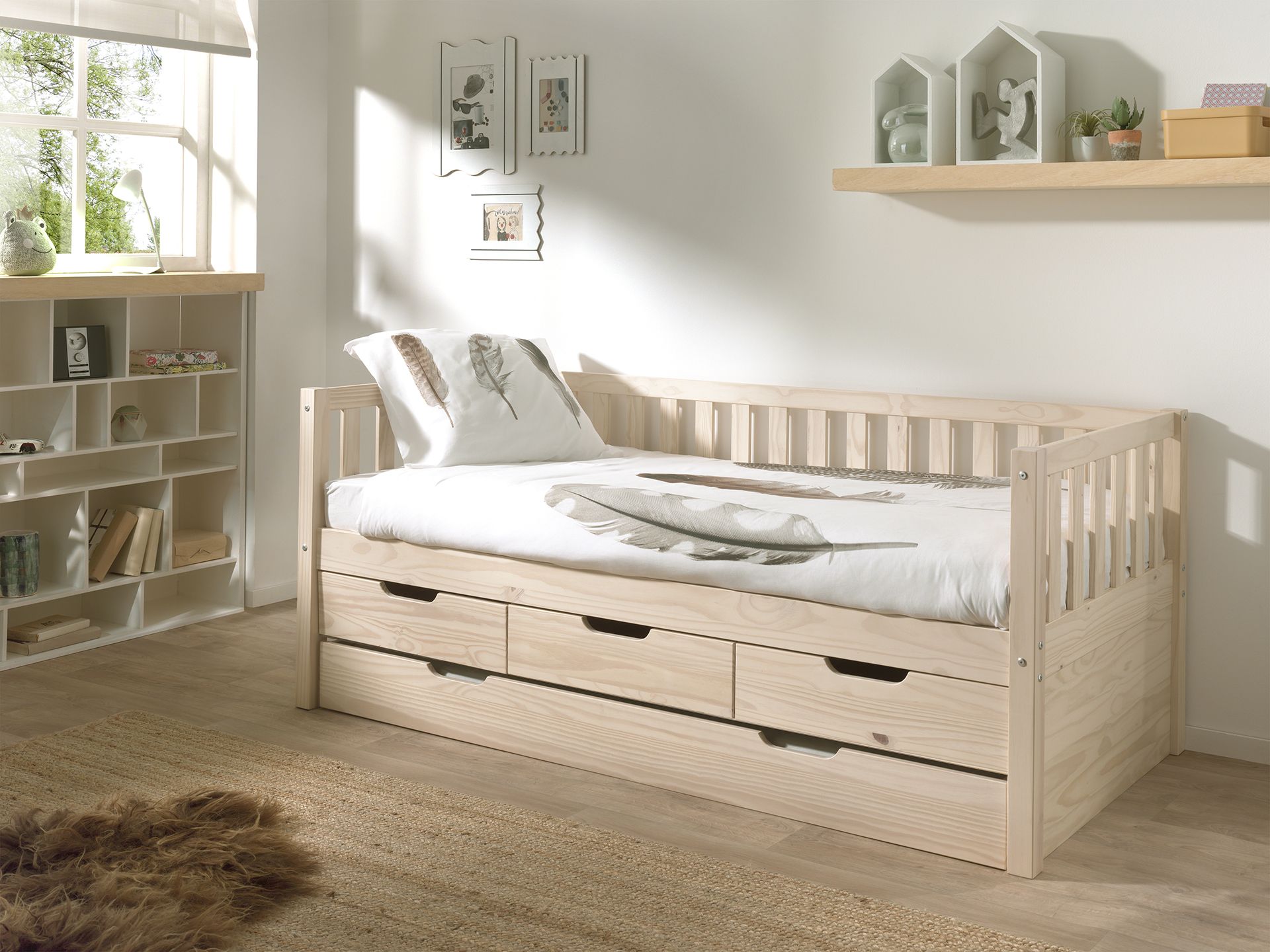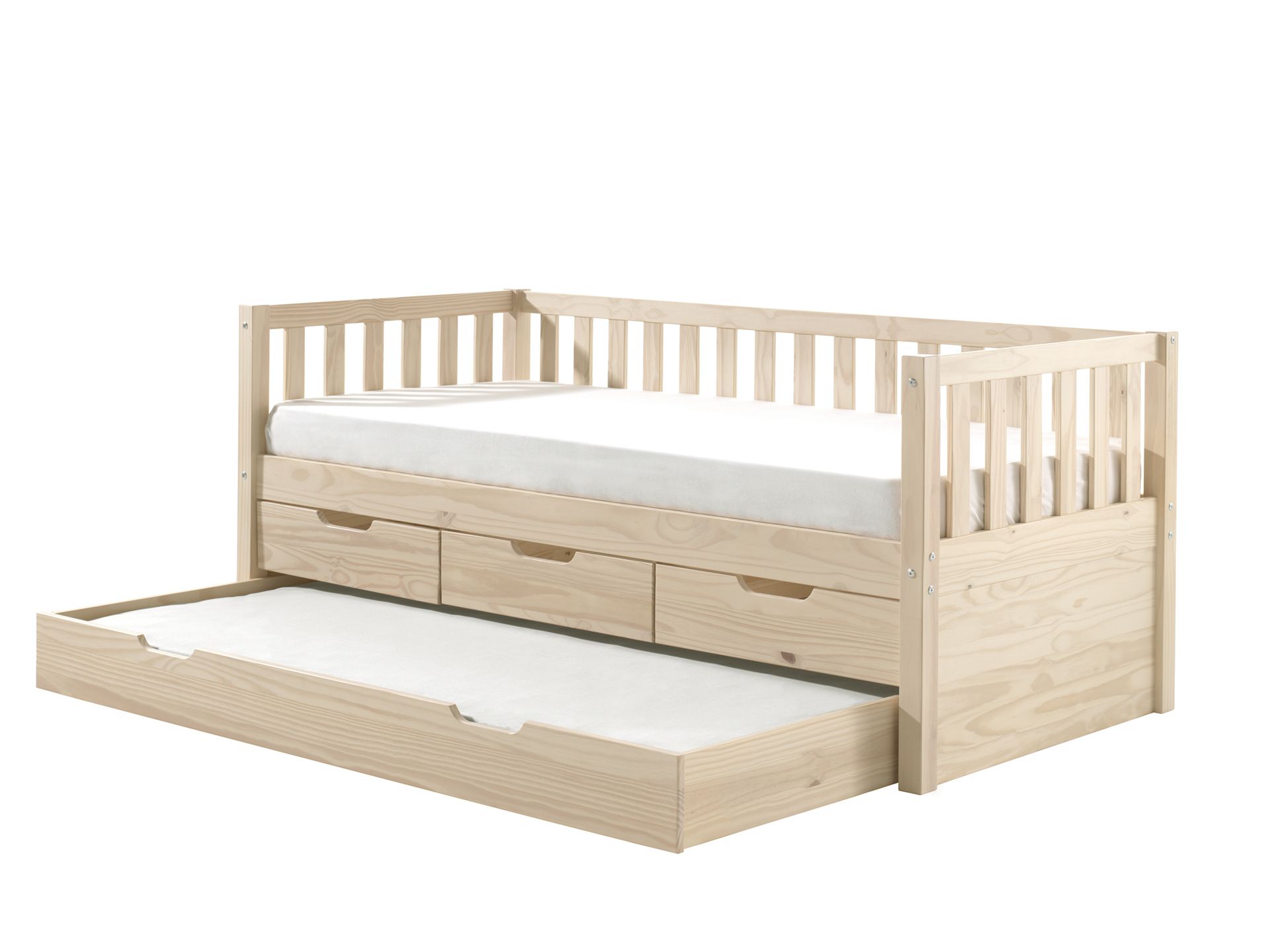 JAXX Fritz Combinatie Milky Pine - Bed (90x200 cm) met 3 Opberglades en bijhorend Rolbed