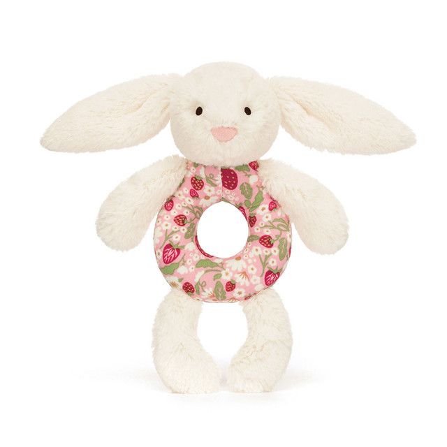 Jellycat Knuffel Blossom Cream Bunny Berry Ring Rattle 18x2x8 cm