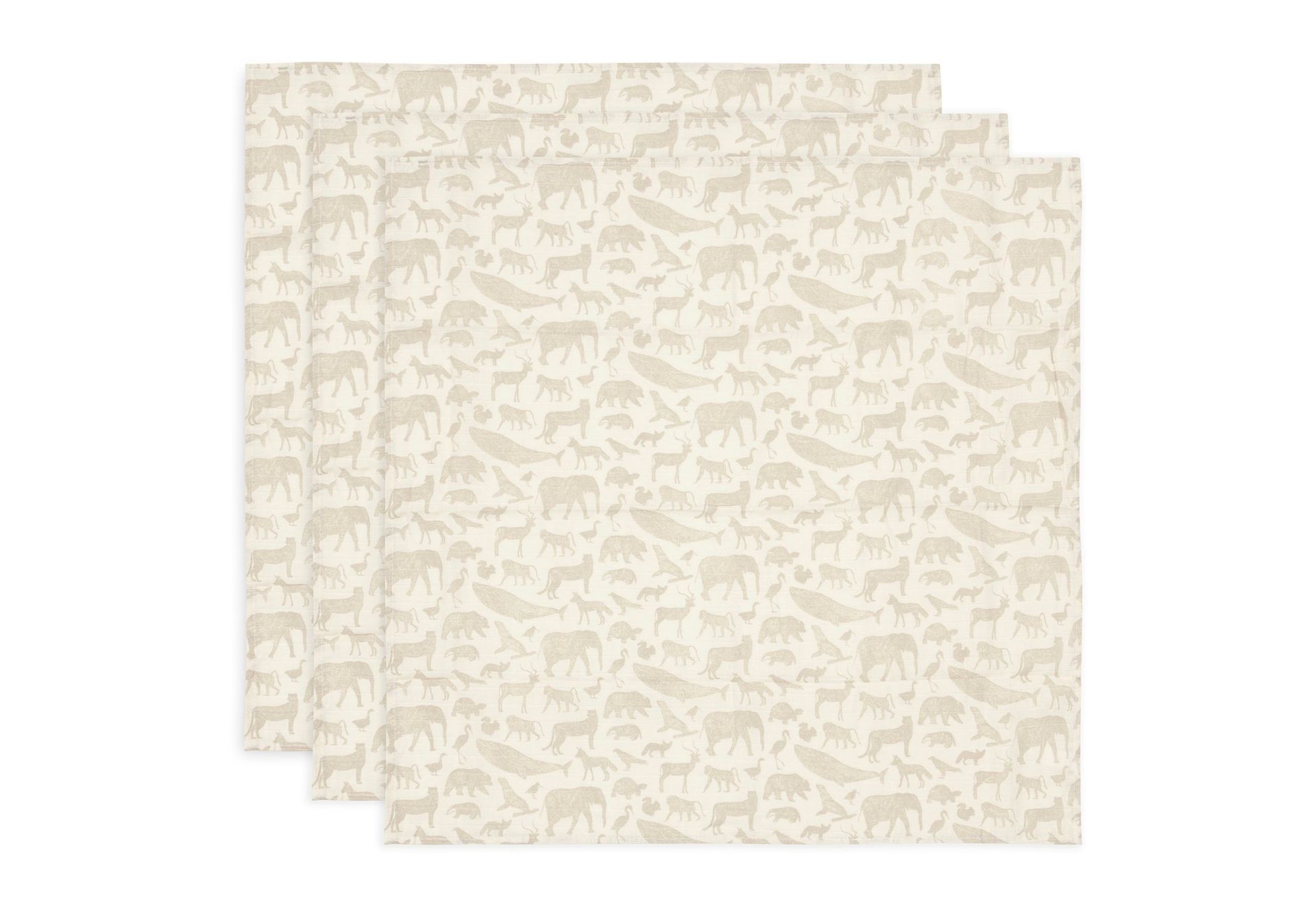 Jollein Tetradoek Animals Nougat 70x70 cm - 3 stuks