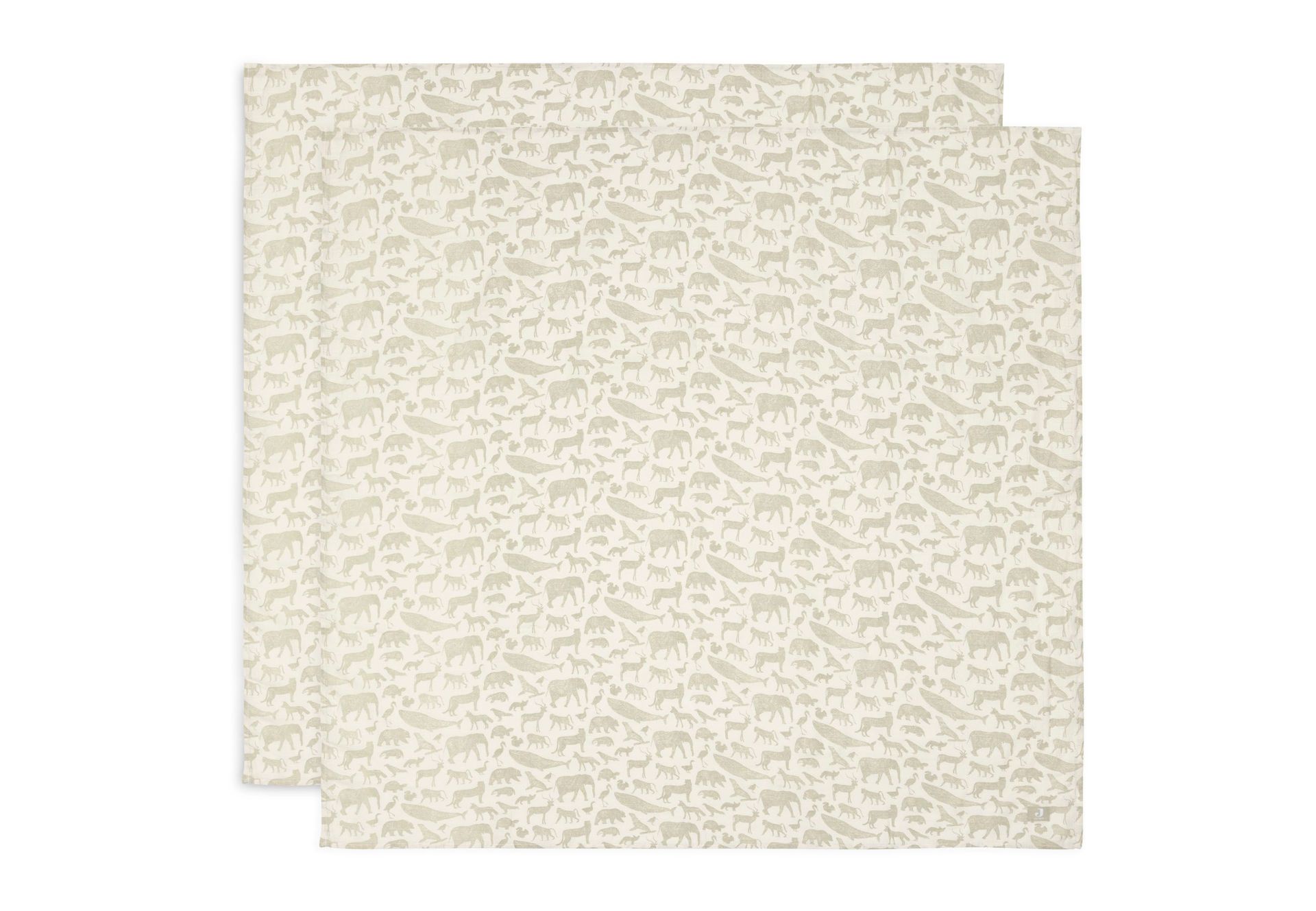 Jollein Tetradoek Animals Olive Green 115x115 cm - 2 stuks