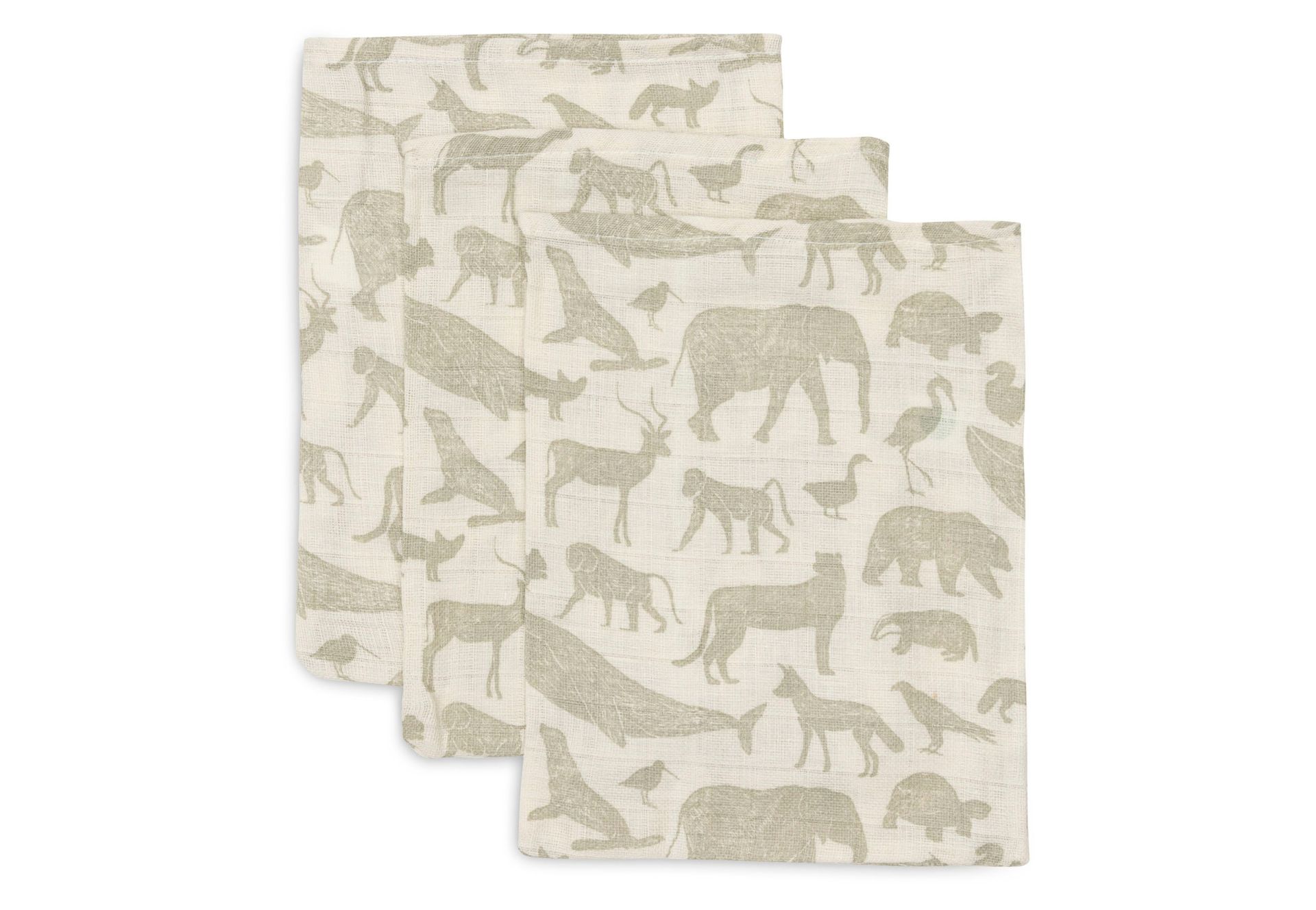 Jollein Washandje tetra Animals Olive Green 20x15 cm - 3 stuks