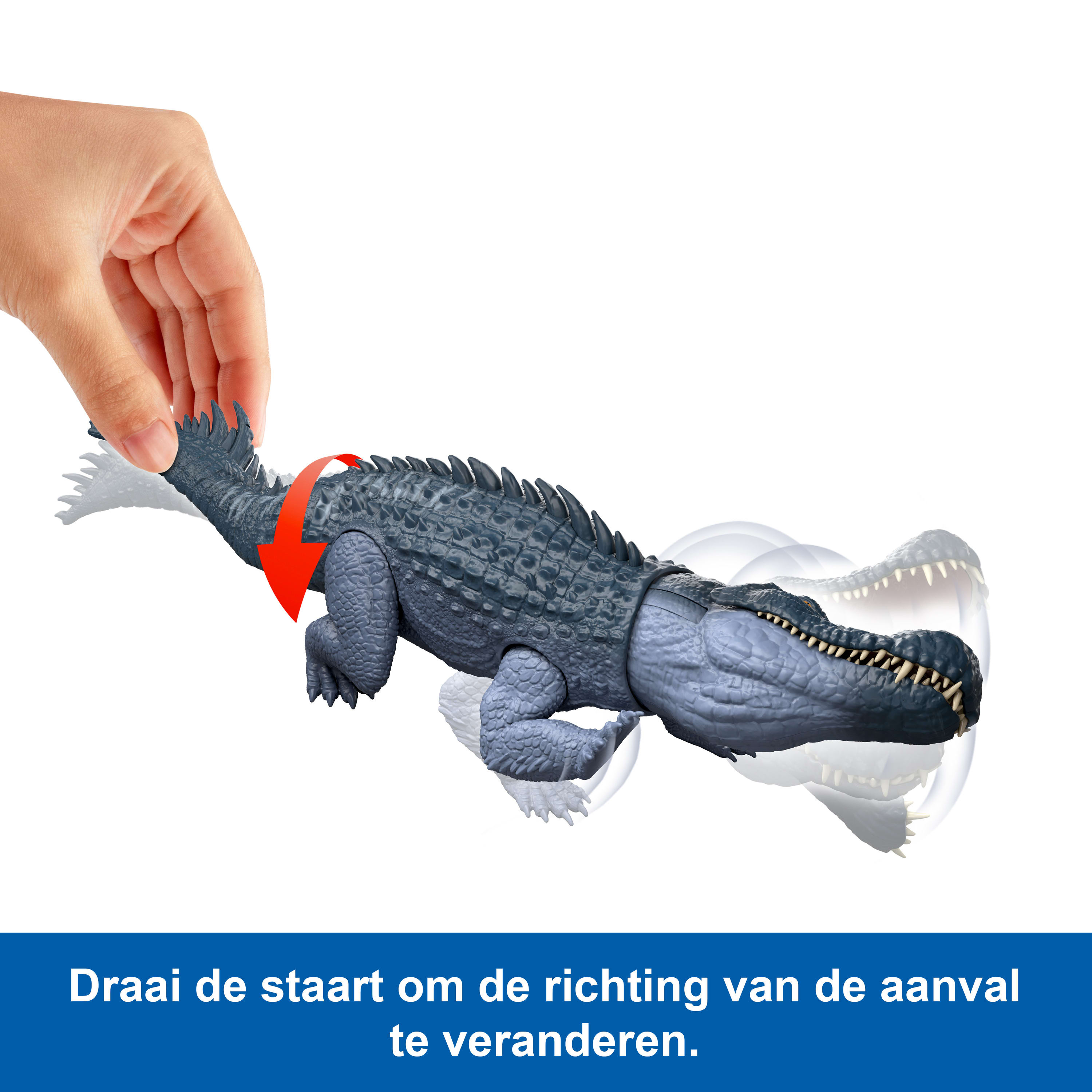 Allesomvattende aanval! Kids krijgen beide bewegingen gemakkelijk onder de knie: beweeg de staart van de Purussaurus op en neer voor verticale happende actie en heen en weer voor een woeste bijtaanval!