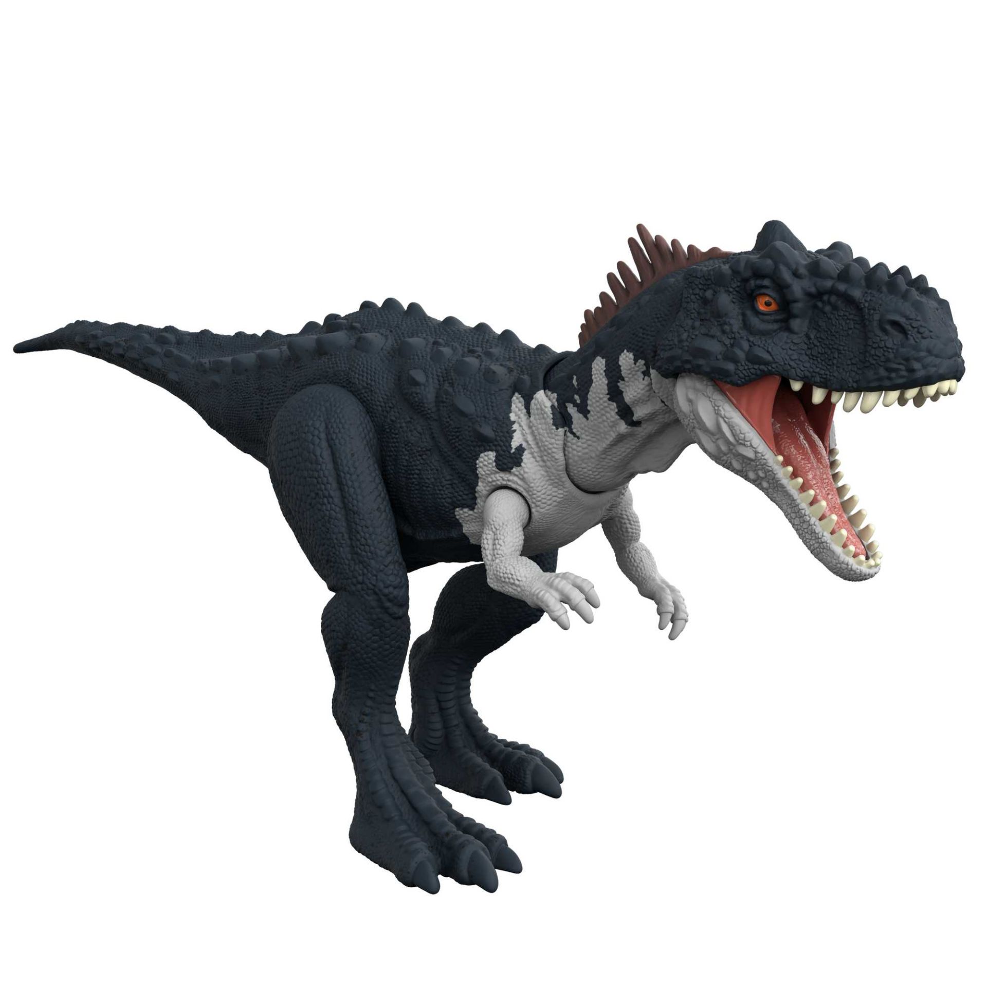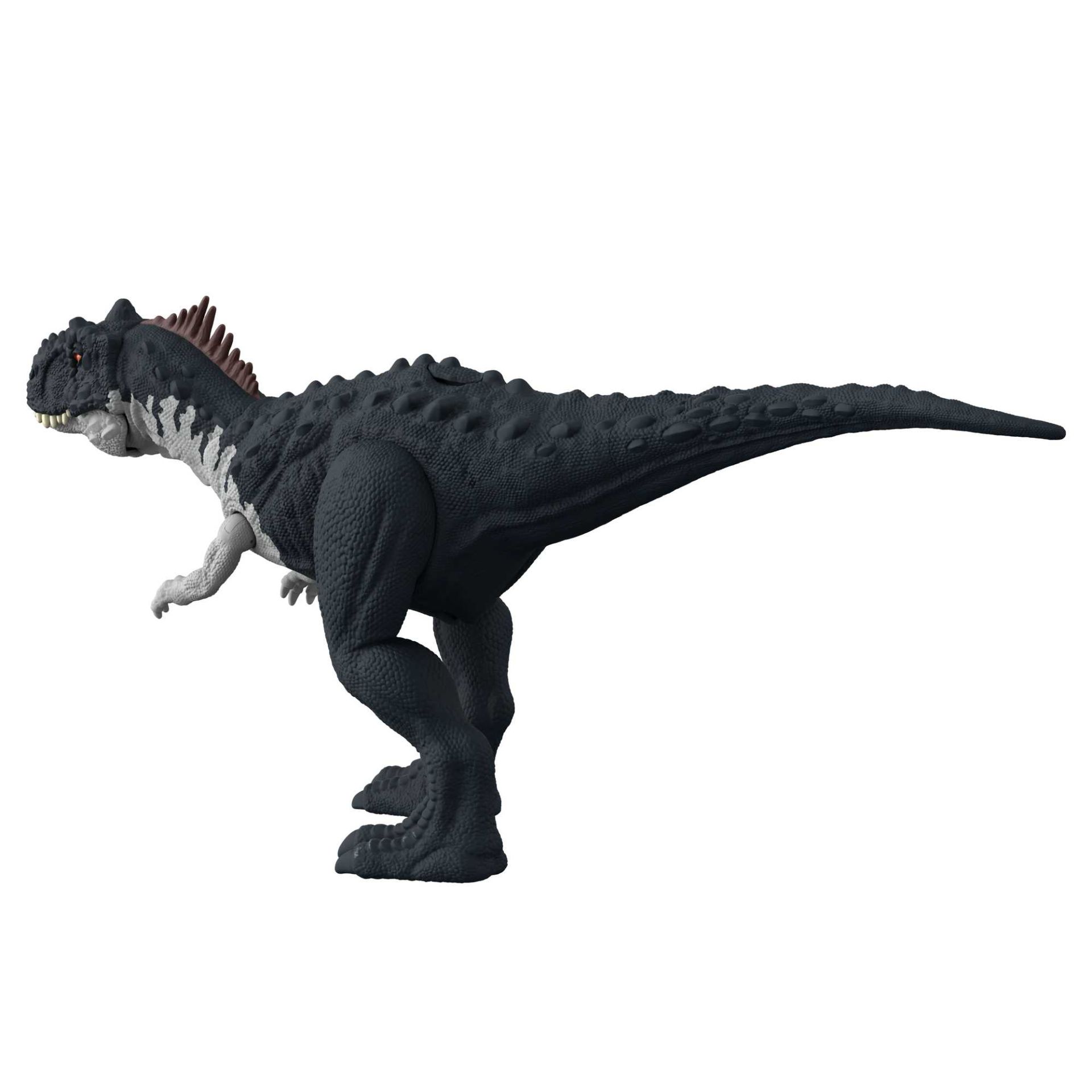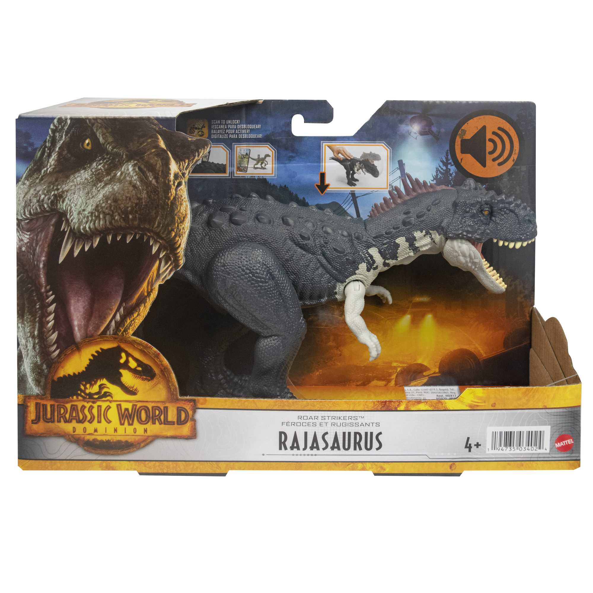 Bereid je voor op spanning en avontuur met deze dinosaurus die is geïnspireerd op Jurassic World Dominion. Deze middelgrote dinosaurusfiguur van Brullende Roofdieren is een vleesetende Rajasaurus. Hij BRULT niet alleen levensecht, maar gaat de strijd al BIJTEND aan, een aanvalsbeweging die kenmerkend is voor deze dinosoort en die nog eens wordt versterkt doordat hij zijn nek uitstrekt! Kinderen kunnen de aanval en het gebrul gemakkelijk activeren door op het heupgedeelte te duwen. De Rajasaurus heeft beweegbare gewrichten, een authentieke vormgeving en realistische kleuren en texturen. Zet de dino in stoere houdingen of verzin je eigen avonturen vol actie. Breng deze dinosaurus TOT LEVEN en speel ook digitaal met augmented reality (AR)! Durf te zien hoe ECHT het spel van de dinosaurussen kan worden! Scan de verborgen DNA-code met elk slim apparaat om de AR-ervaringen te ontgrendelen in de gratis Jurassic World Facts app. Geweldig voor fans van dinosaurussen en actiespellen; geschikt voor 4 jaar en ouder. Slim apparaat niet inbegrepen. Afwijkende kleuren, afmetingen en versieringen mogelijk.