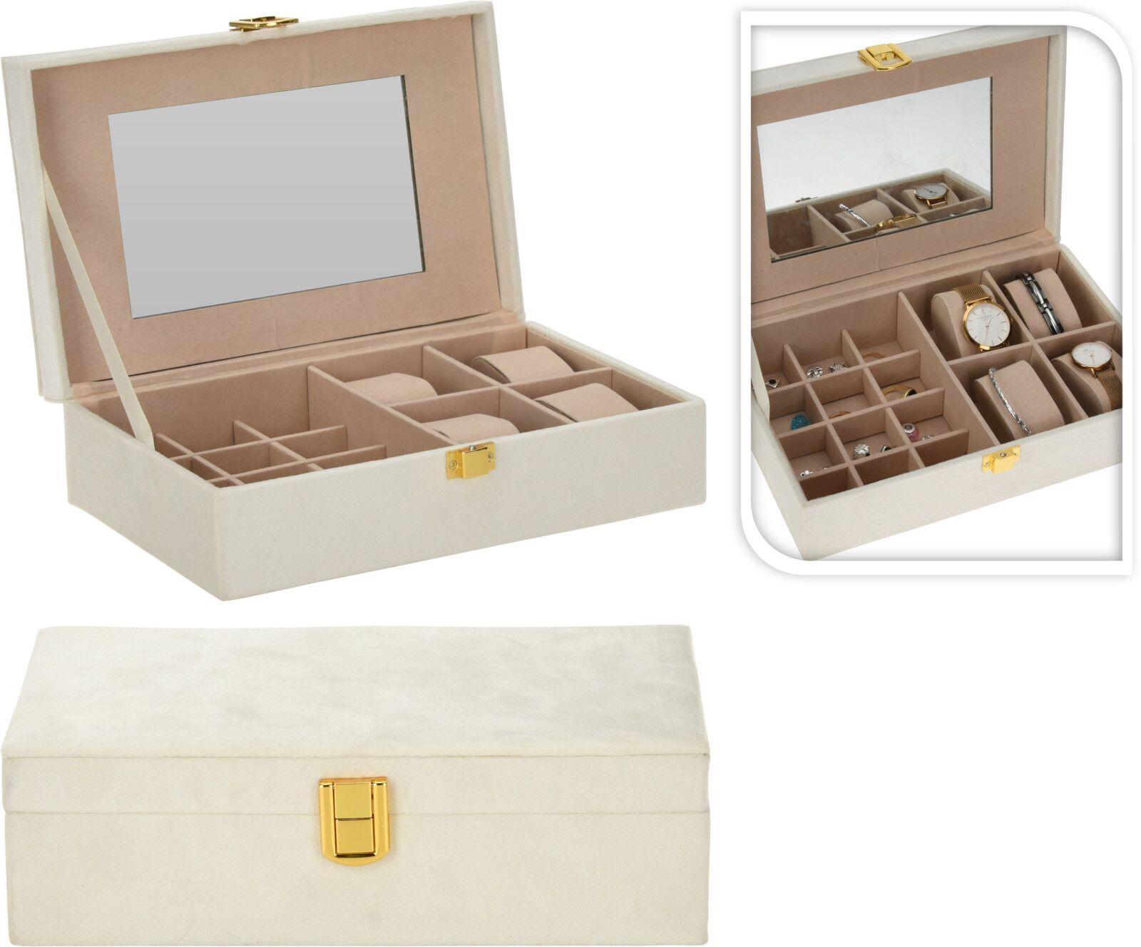 Juwelendoos Wit met Spiegel 25x16x7 cm - Beige Fluwelen Voering