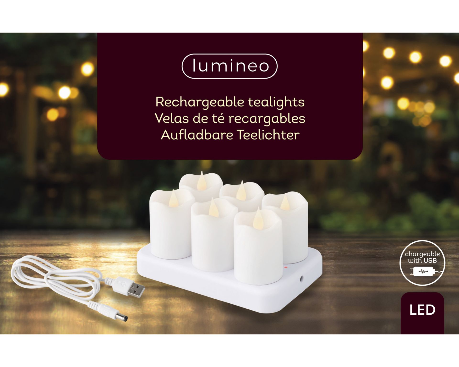 Kaars LED Wit set 6 stuks 4x6 cm - USB-Oplaadbaar