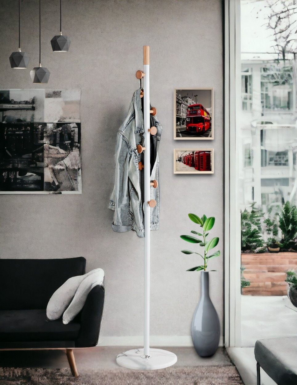 Kapstok Aresso 178 cm Wit/Naturel met 8 Haken