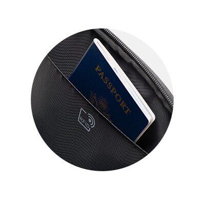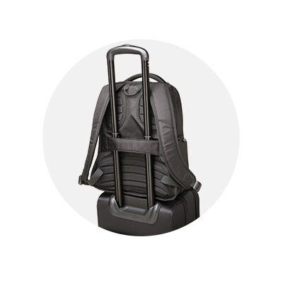 De trolleygreep-opening maakt het mogelijk om de rugzak eenvoudig en veilig te bevestigen aan een trolley of aan uw handbagage.
