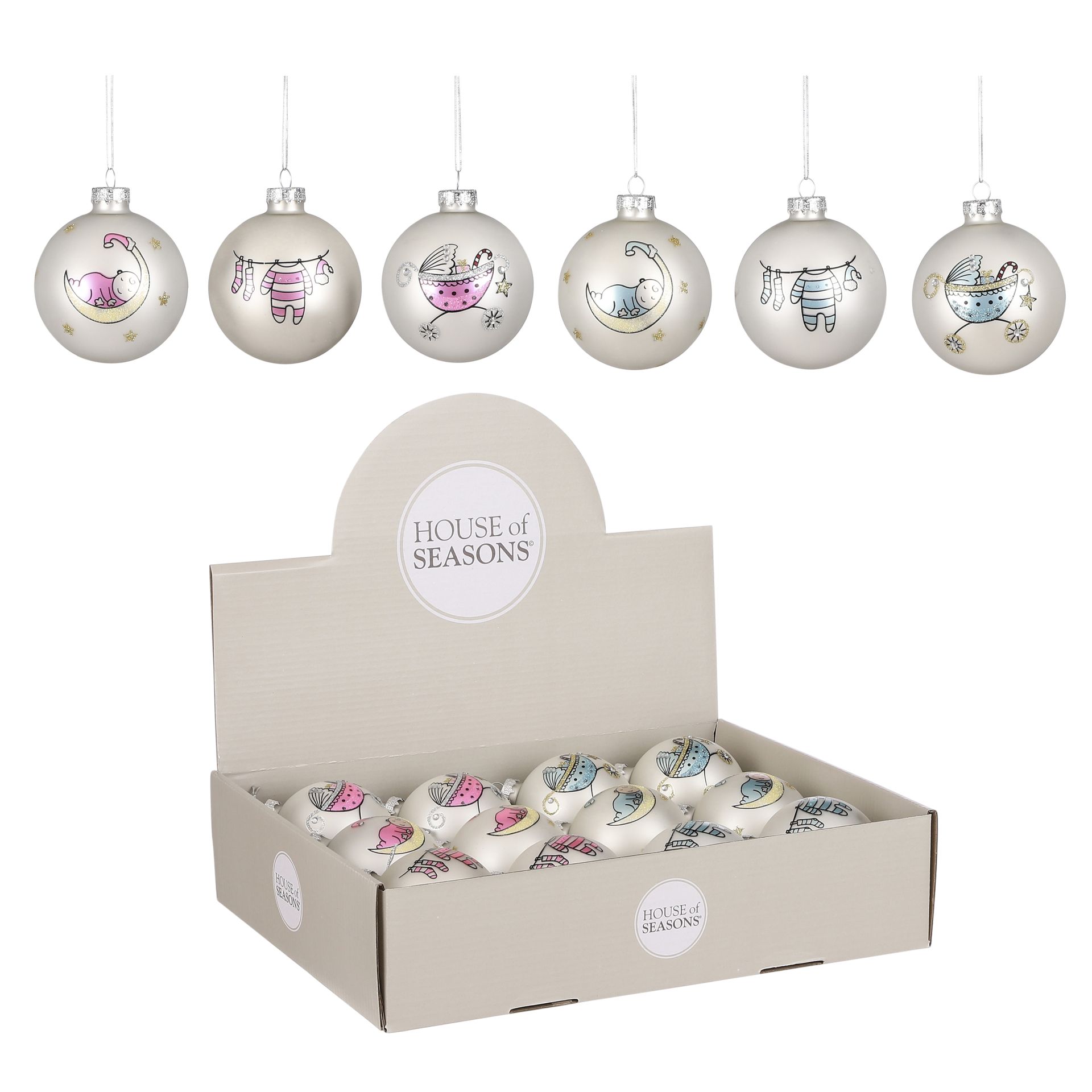 Kerstbal Glas Baby Zilver 8 cm - Assorti - prijs per stuk