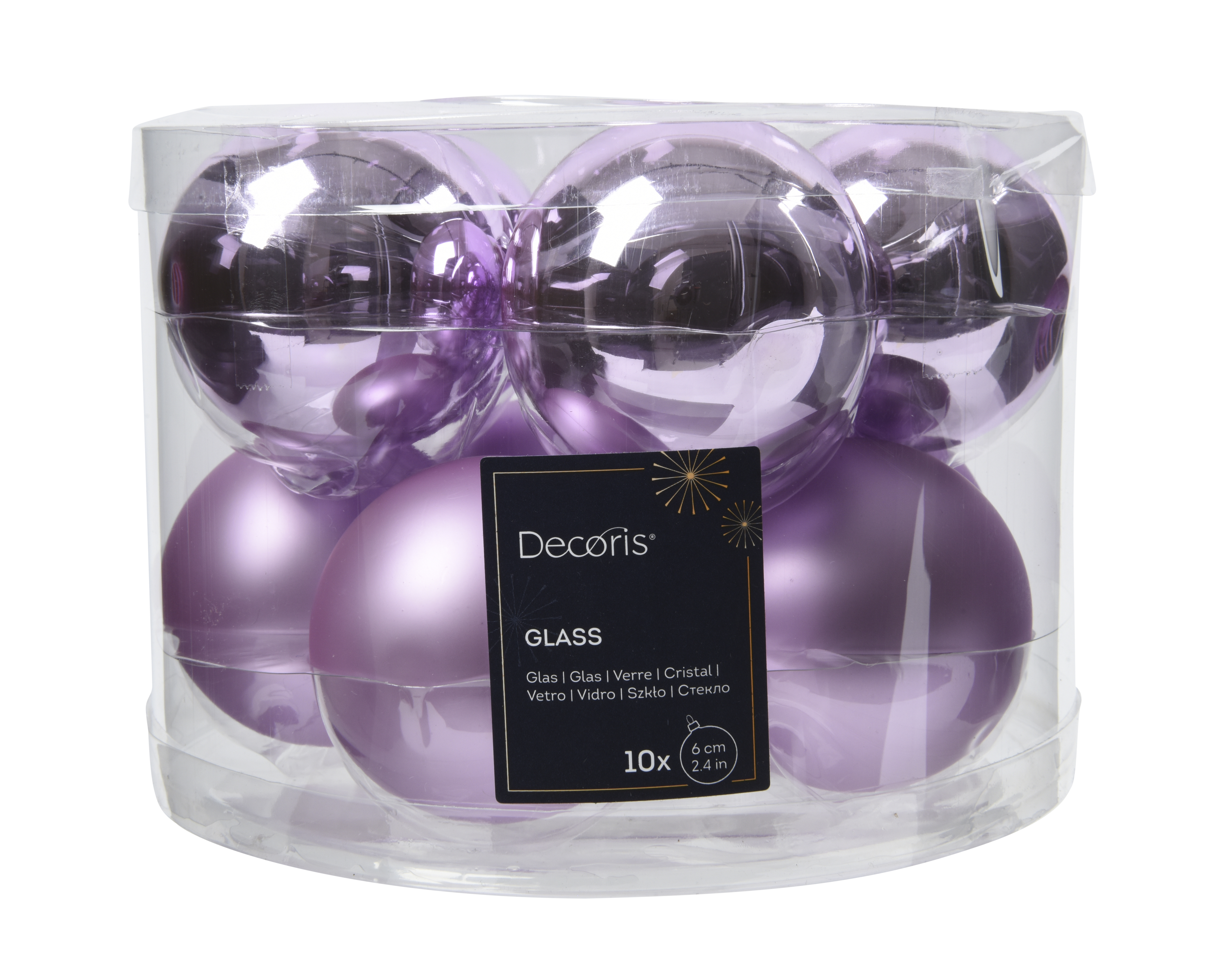 Kerstbal Glas Fris Lila 6cm set 10 stuks - Mat/Glanzend