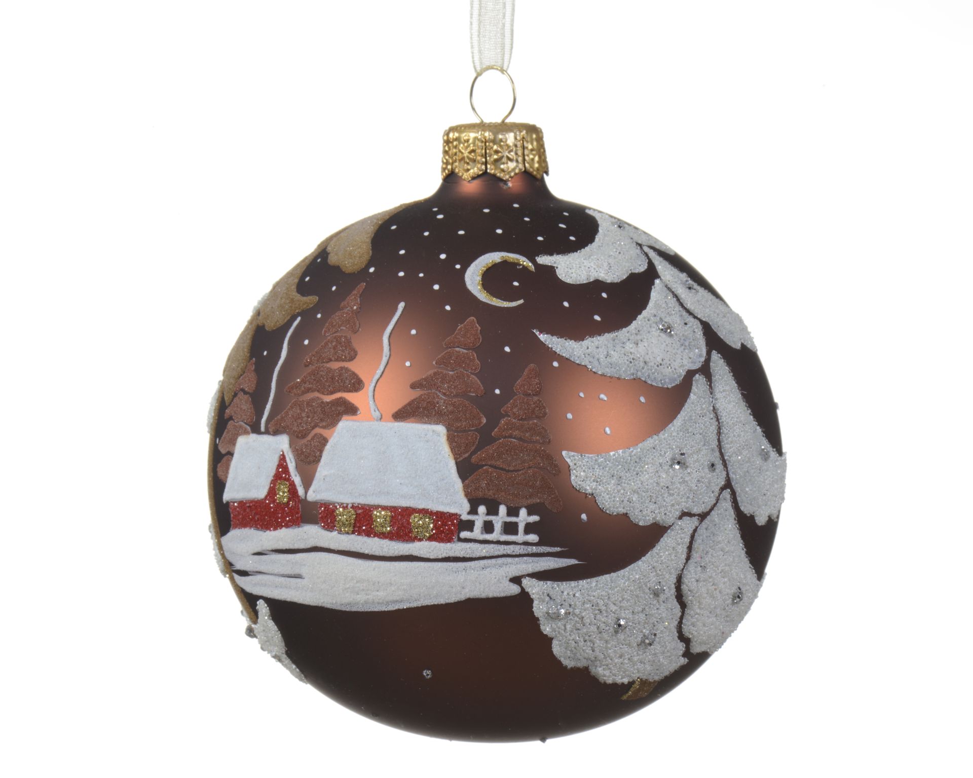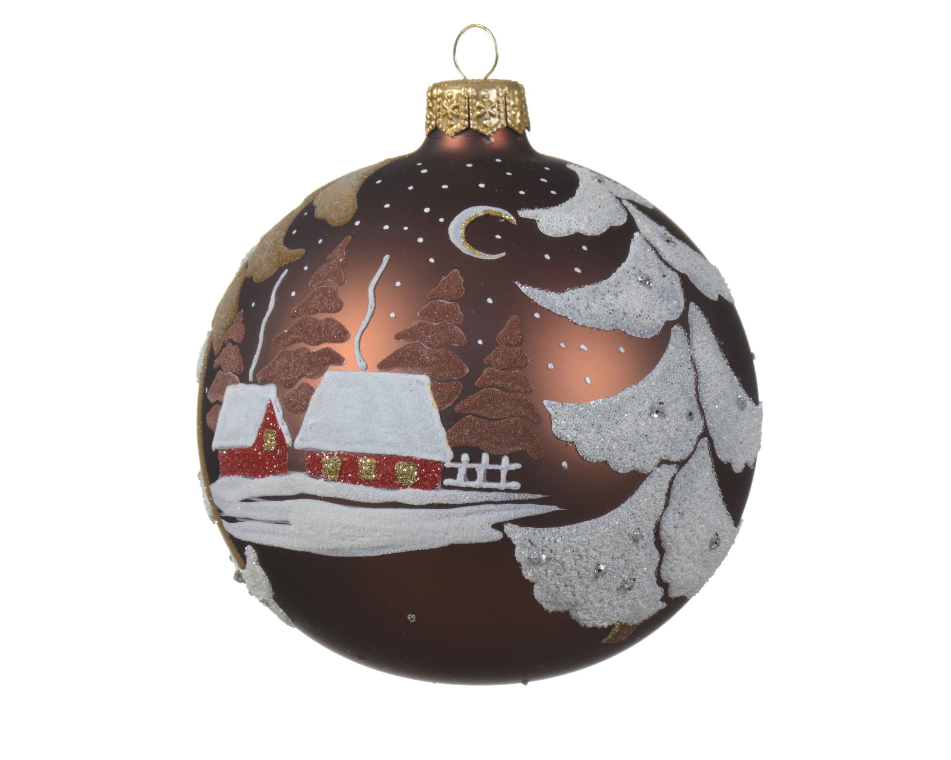 Kerstbal Glas met Winterlandschap 10 cm - Espresso