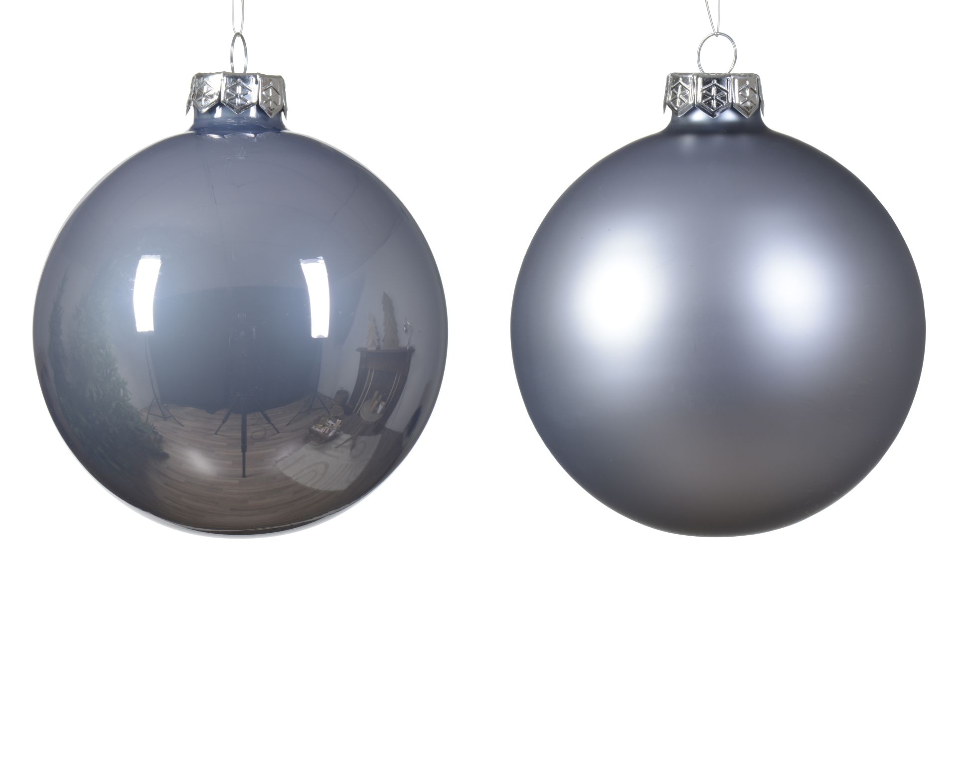 Kerstbal Glas Mistblauw Set 4 stuks 10 cm - Mat/Emaille