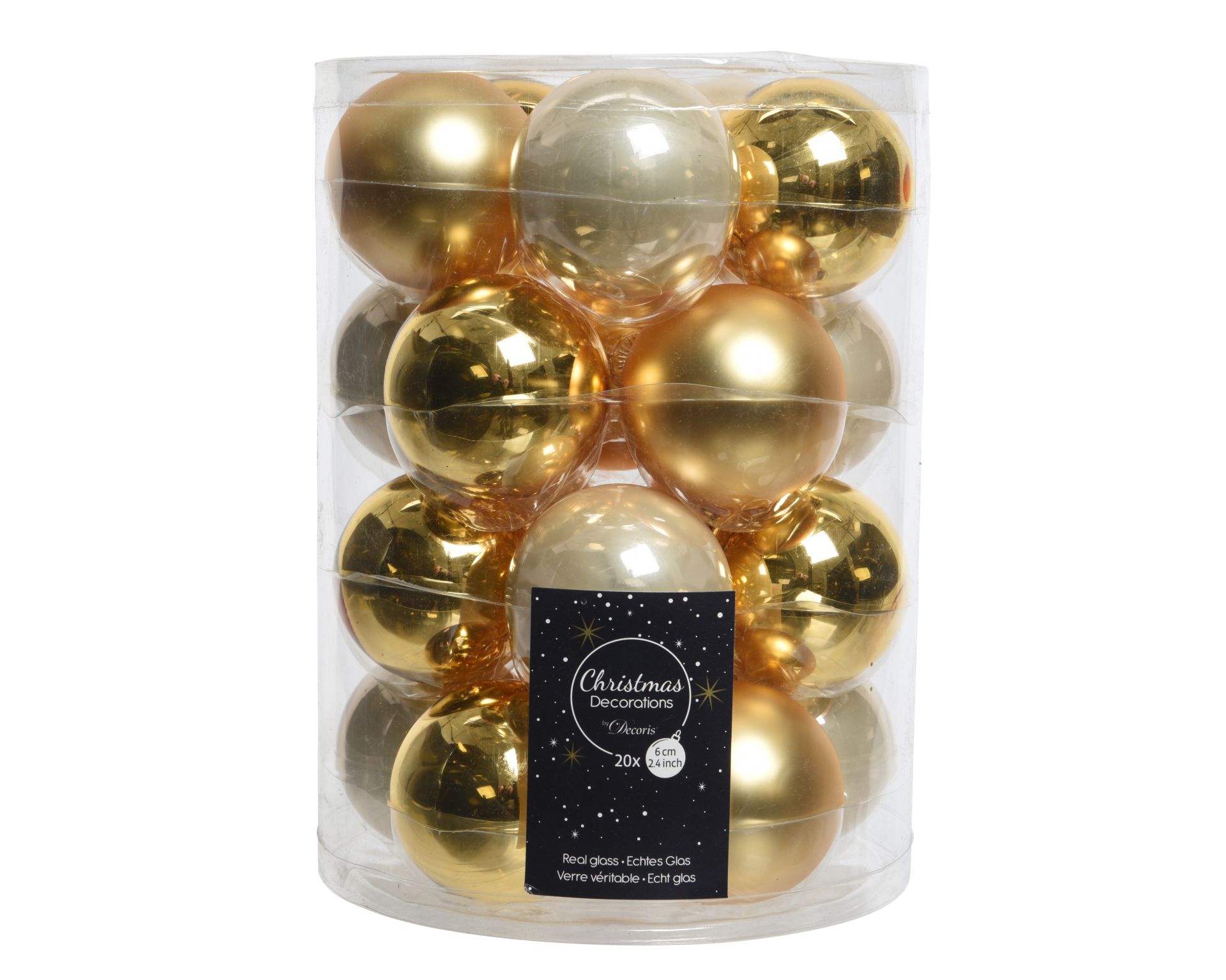 Kerstbal Glas Parel/Goud 6cm set 20 stuks - Mat/Emaille/Glanzend
