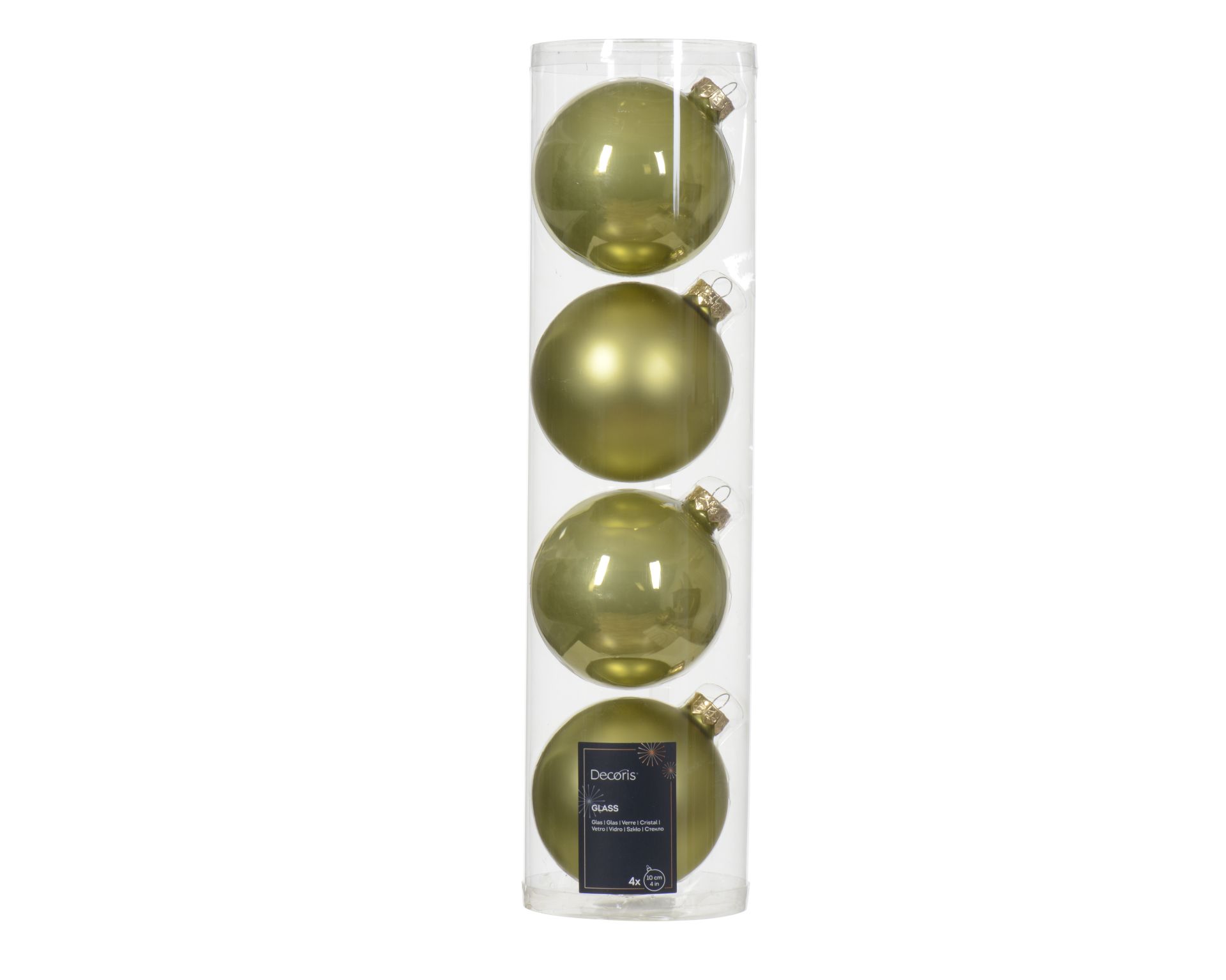 Kerstbal Glas Pistache Set 4 stuks 10 cm - Mat/Emaille