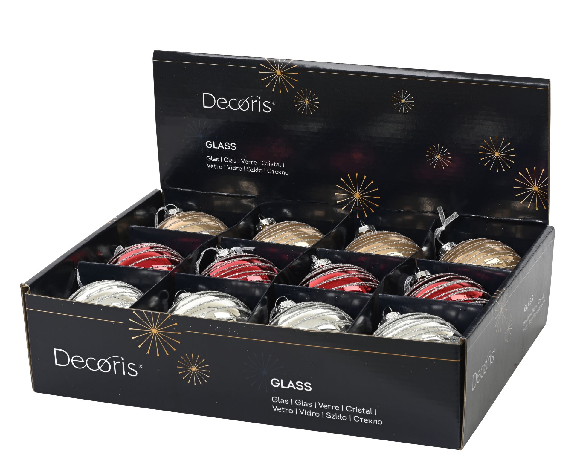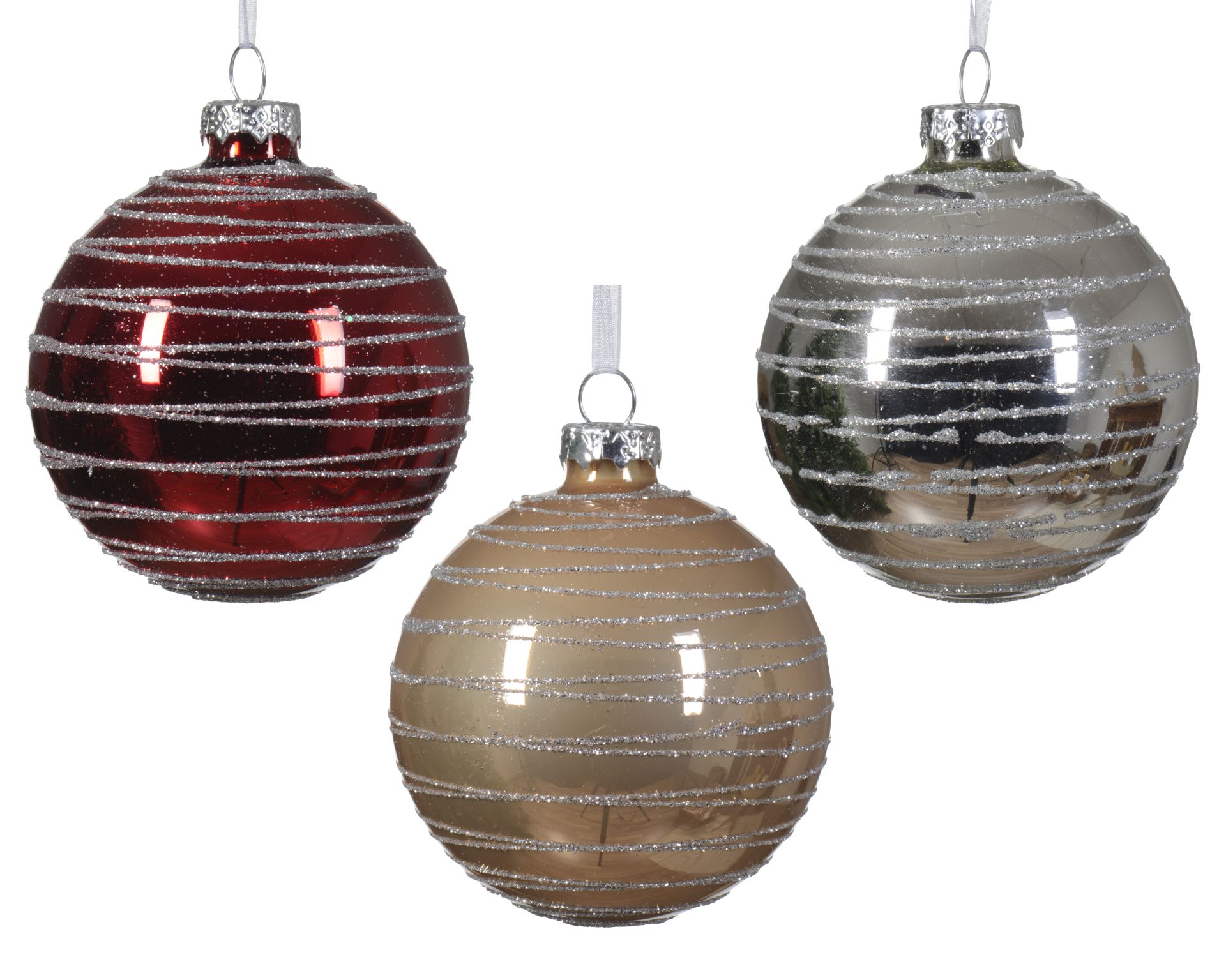 Kerstbal Glas Zilver/Kerstrood/Gember 8 cm - assorti
