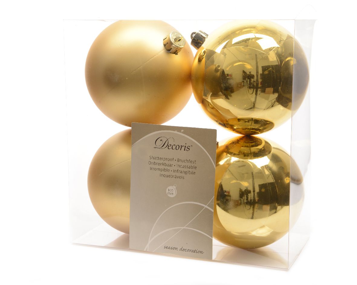 Kerstbal PLC Lichtgoud 10cm set 4 stuks - Mat/Glanzend