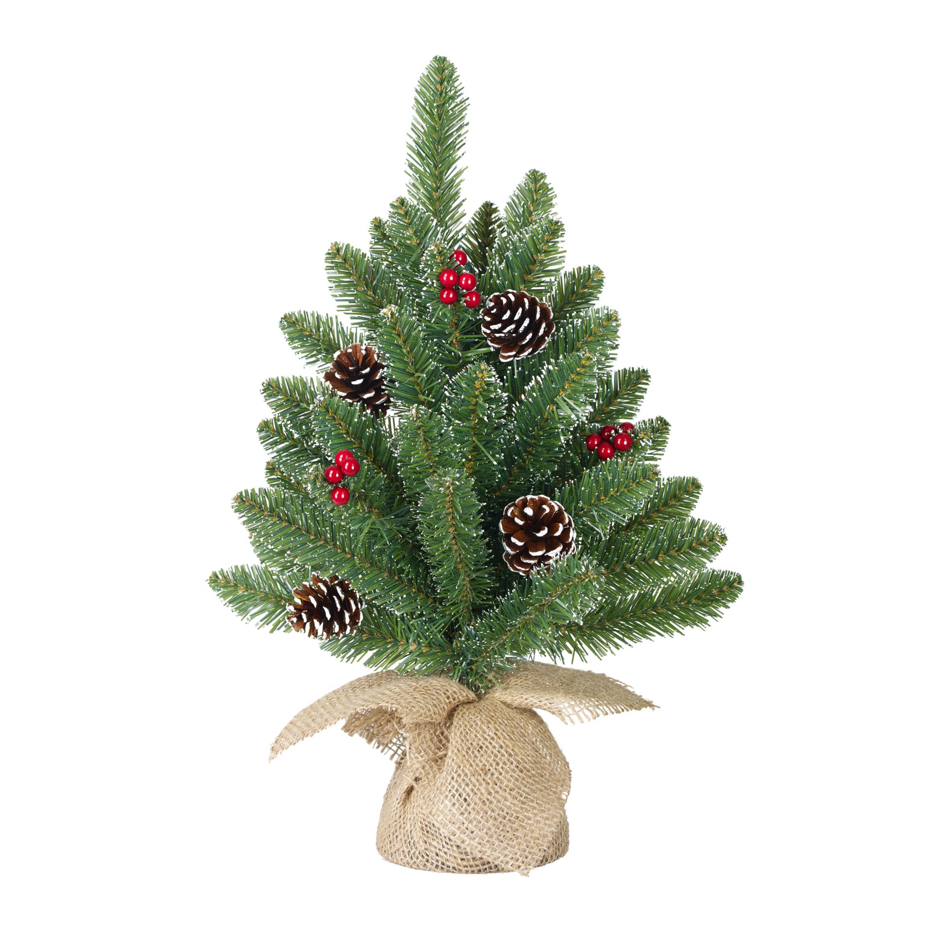 Kerstboom Mini Creston Bes Groen 30x15 cm - 28 Tips - In Jute Zak - PVC