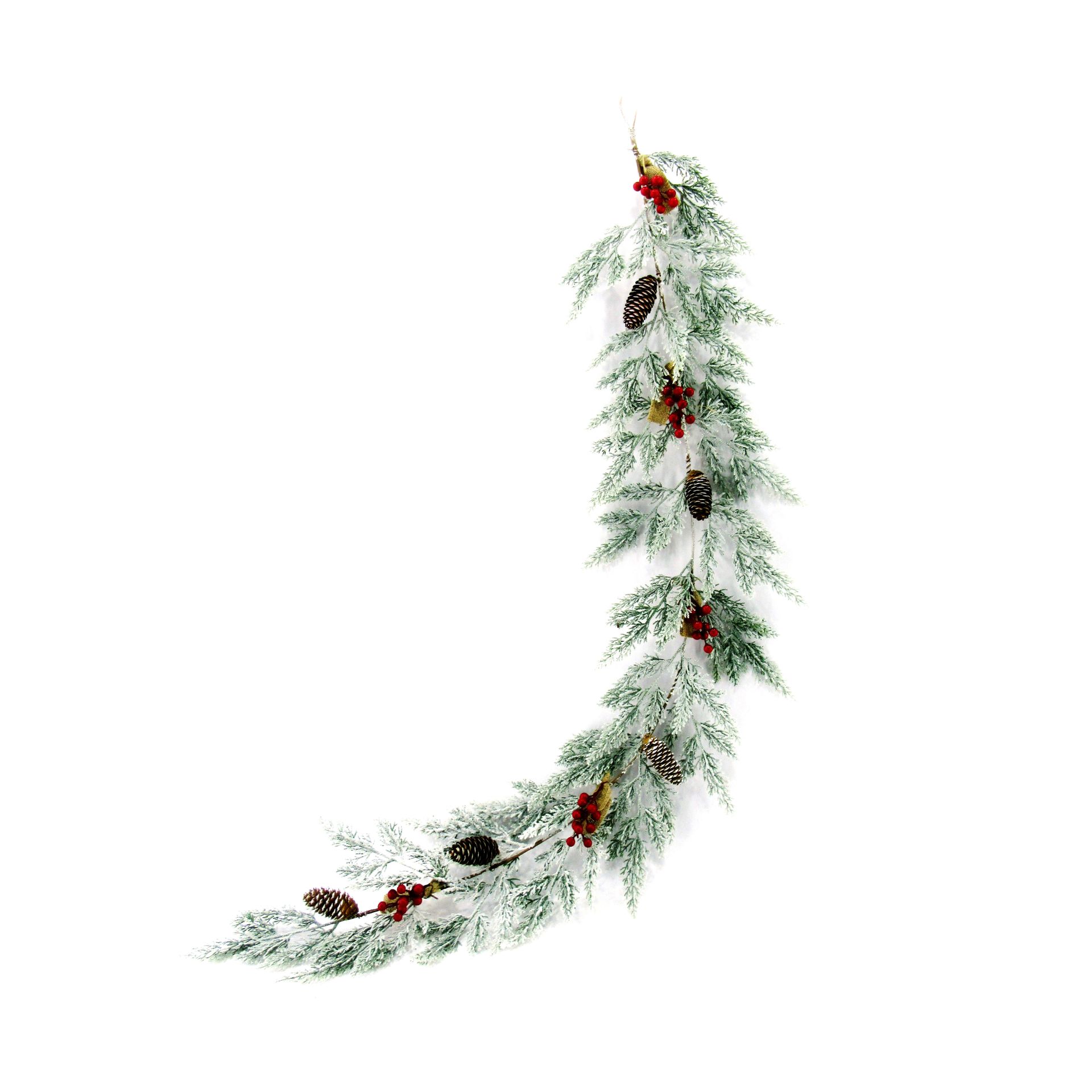 Kerstguirlande Pluto Snow 150x20 cm - 22 Tips - met Rode Bessen & Dennenappels - PE