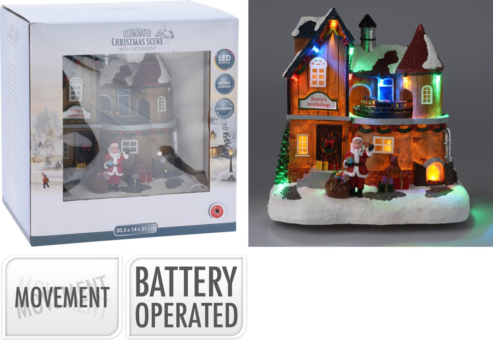 Kersthuis LED Santa's Workshop 20.5x14x21 cm - met Beweging