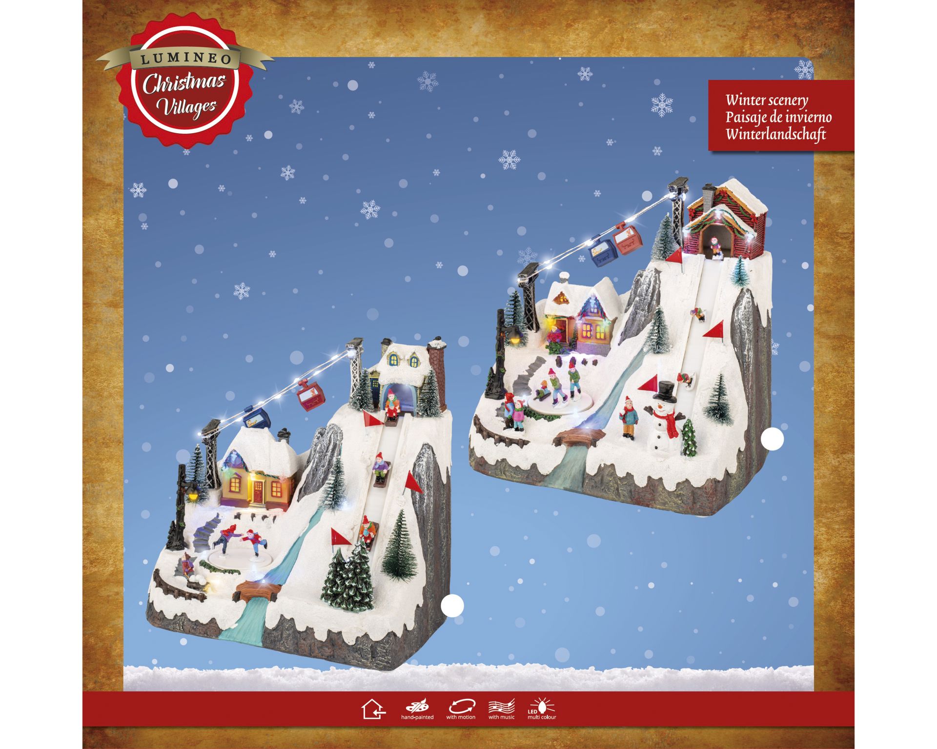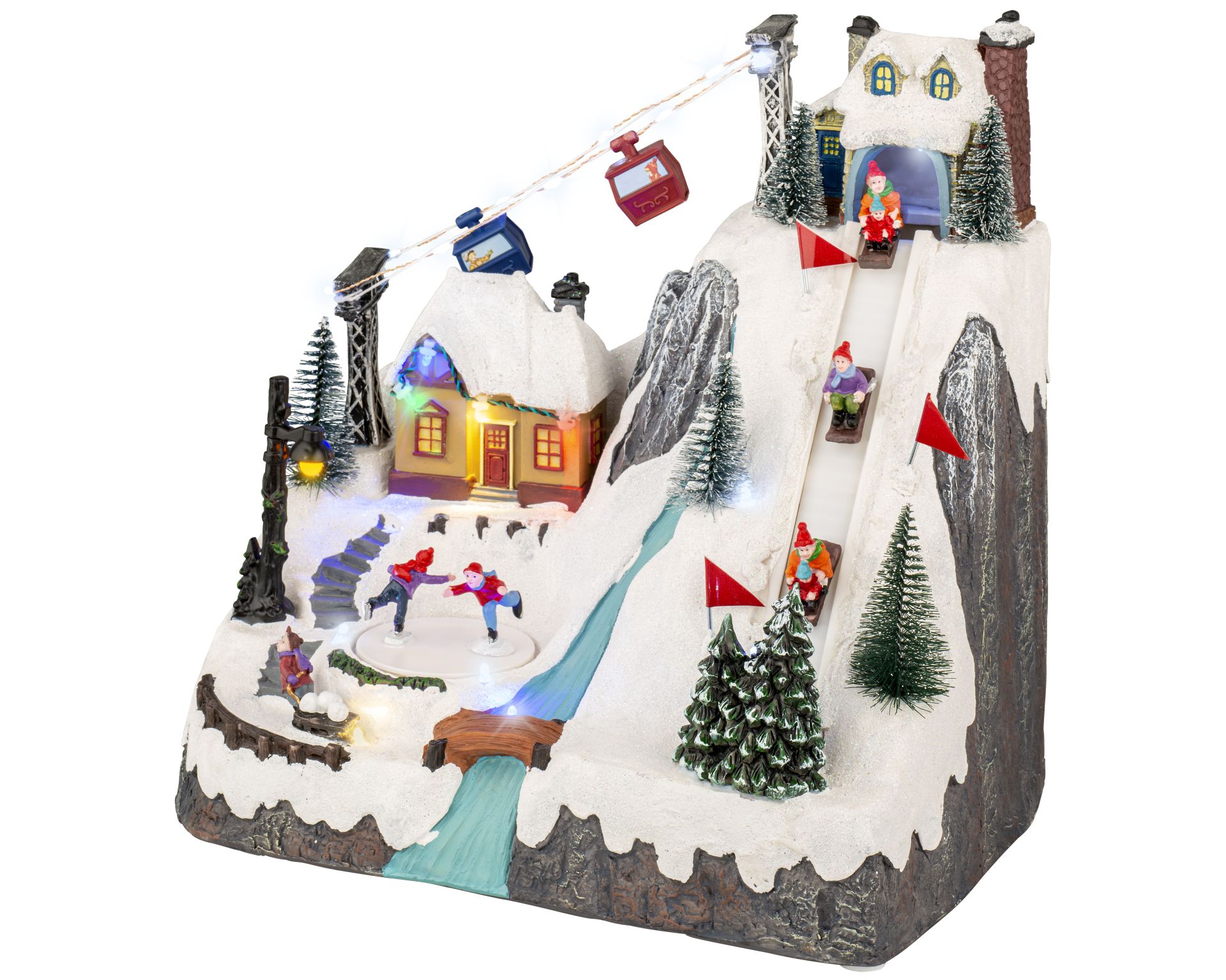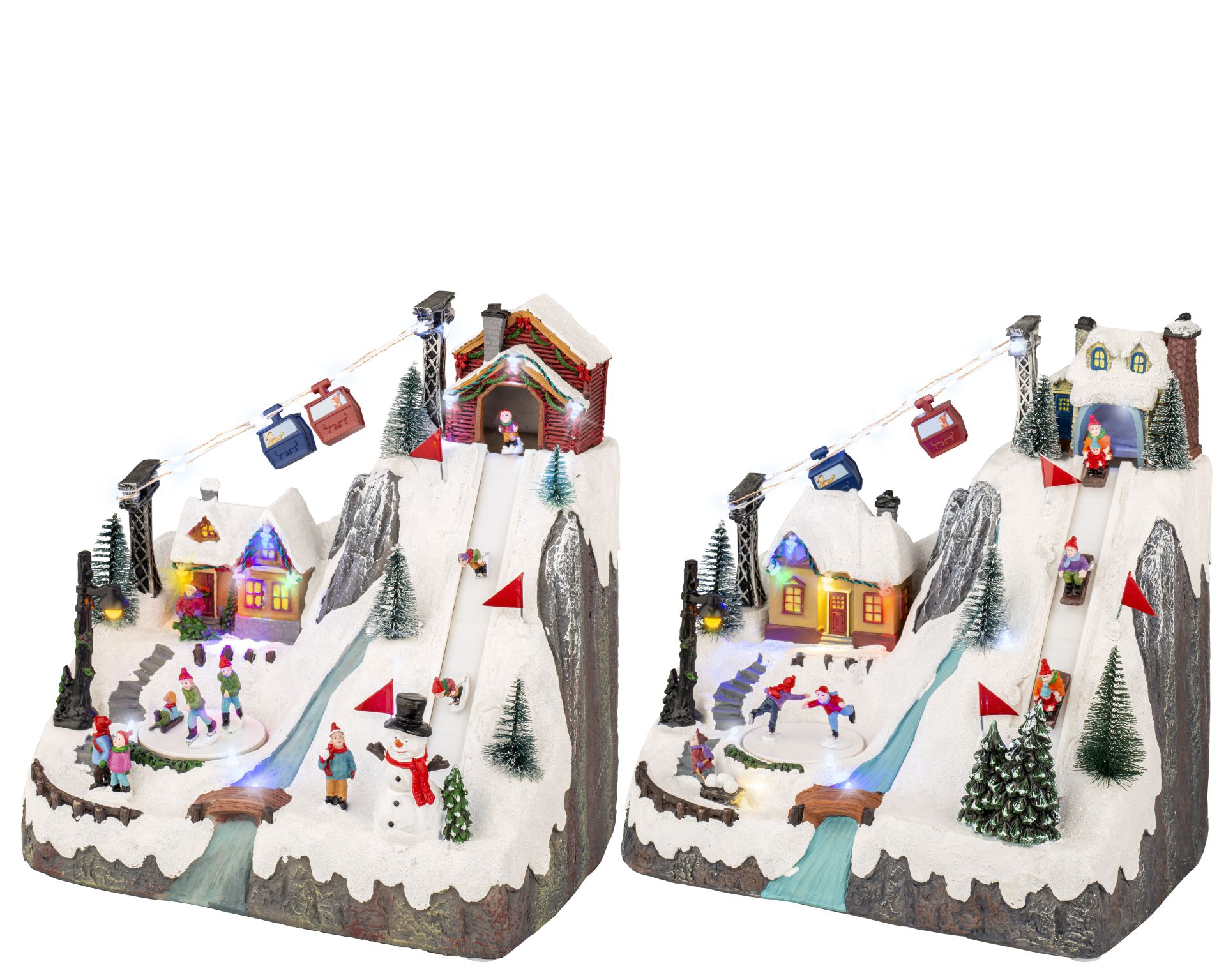 Kersttafereel Skipiste Multicolor 21x29x28 cm - 22 leds - assorti - prijs per stuk