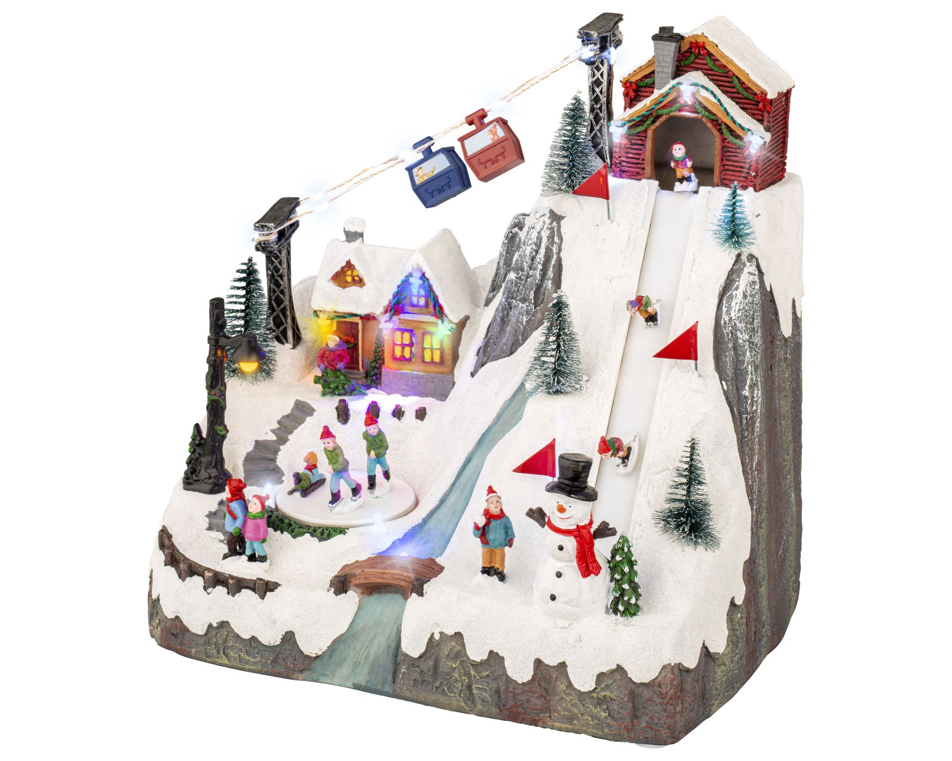 Kersttafereel Skipiste Multicolor 21x29x28 cm - 22 Lights - assorti - prijs per stuk