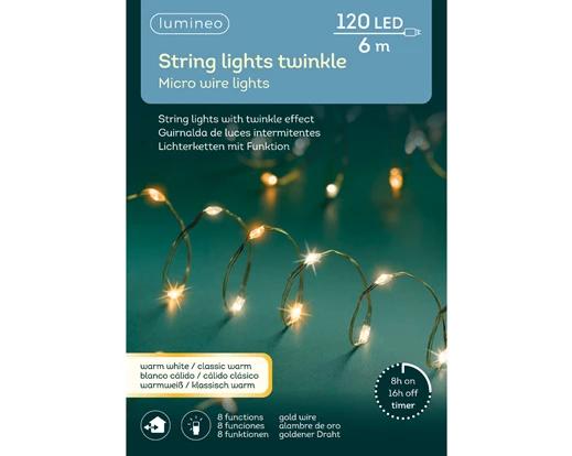 Kerstverlichting Micro LED String Twinkle Light Outdoor 6 m - 120 leds - Gold/Classic Warm