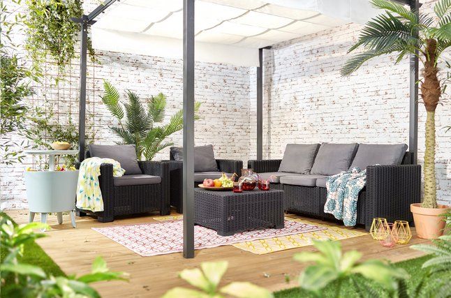 Geef je tuin of terras een stijlvolle upgrade met deze elegante Allibert California Loungebank. De dikke kussens zijn inbegrepen en verhogen het comfort. Met deze loungebank ontspan je in stijl. Hij heeft een luxe wickeruitstraling en is daarmee een eyecatcher in iedere tuin. De California loungebank is weerbestendig en onderhoudsvrij. Door het vlechtwerk heeft de bank een natuurlijke en sfeervolle uitstraling en ze zorgen ervoor dat je je helemaal thuis voelt in je tuin.